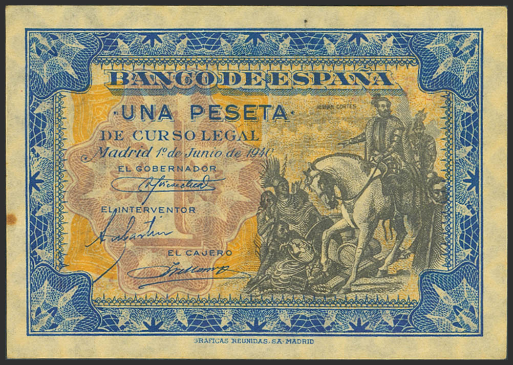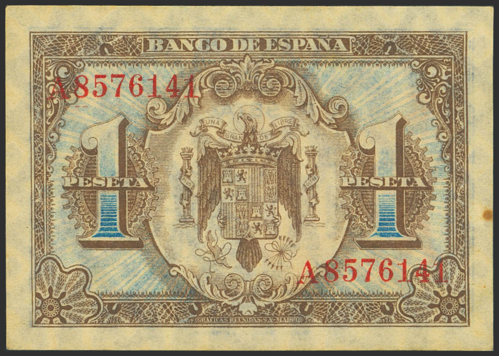 1 Peseta. 1 de Junio de 1940. Serie A. (Edifil 2023: 441a). Apresto original, tonalizado. SC-.
