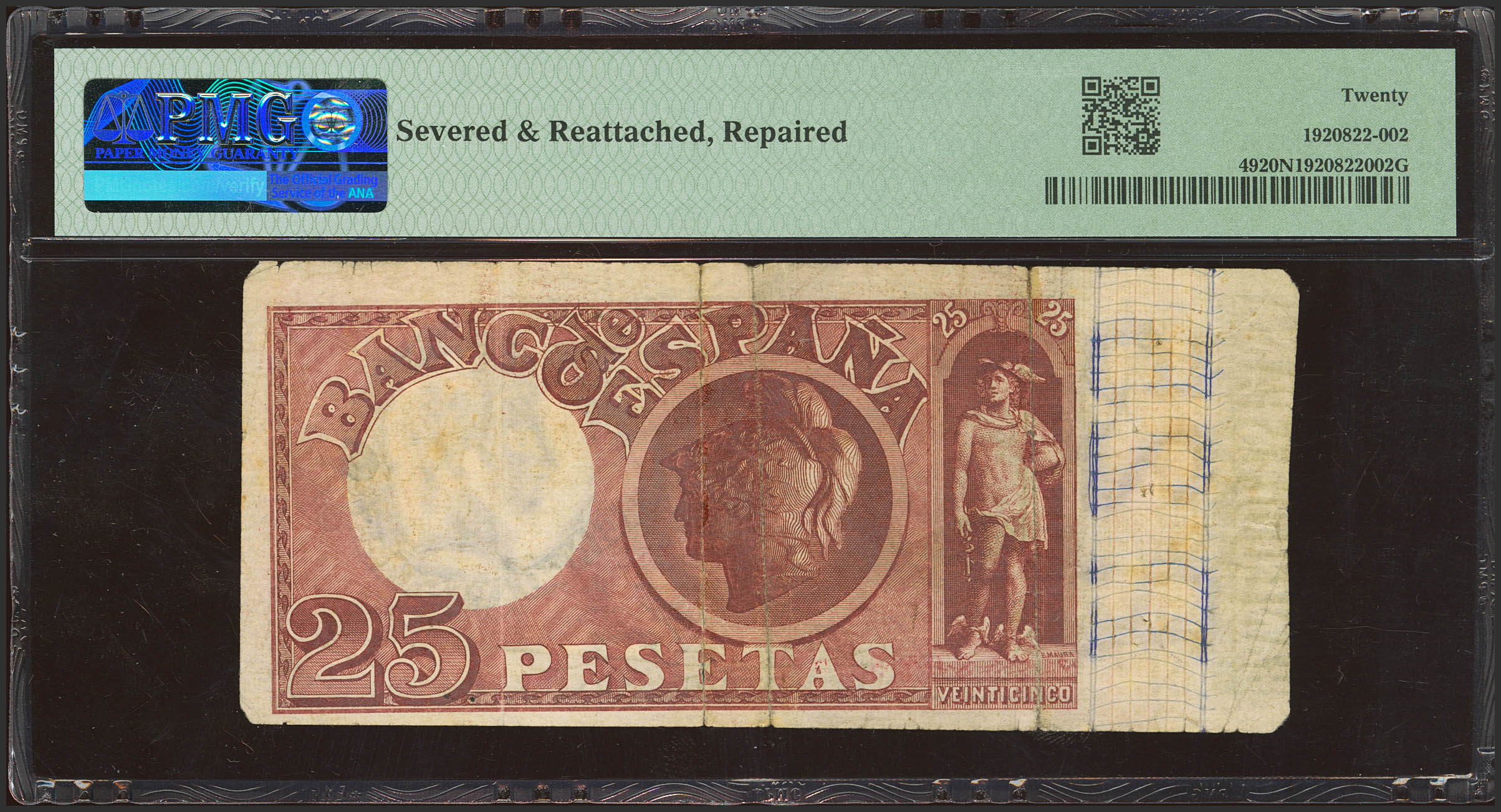 25 Pesetas. 17 de Mayo de 1899. Serie M. (Edifil 2023: 306a, Pick: 49). Reparado. MBC. Encapsulado PMG20NET (severed and reattached, repaired).
