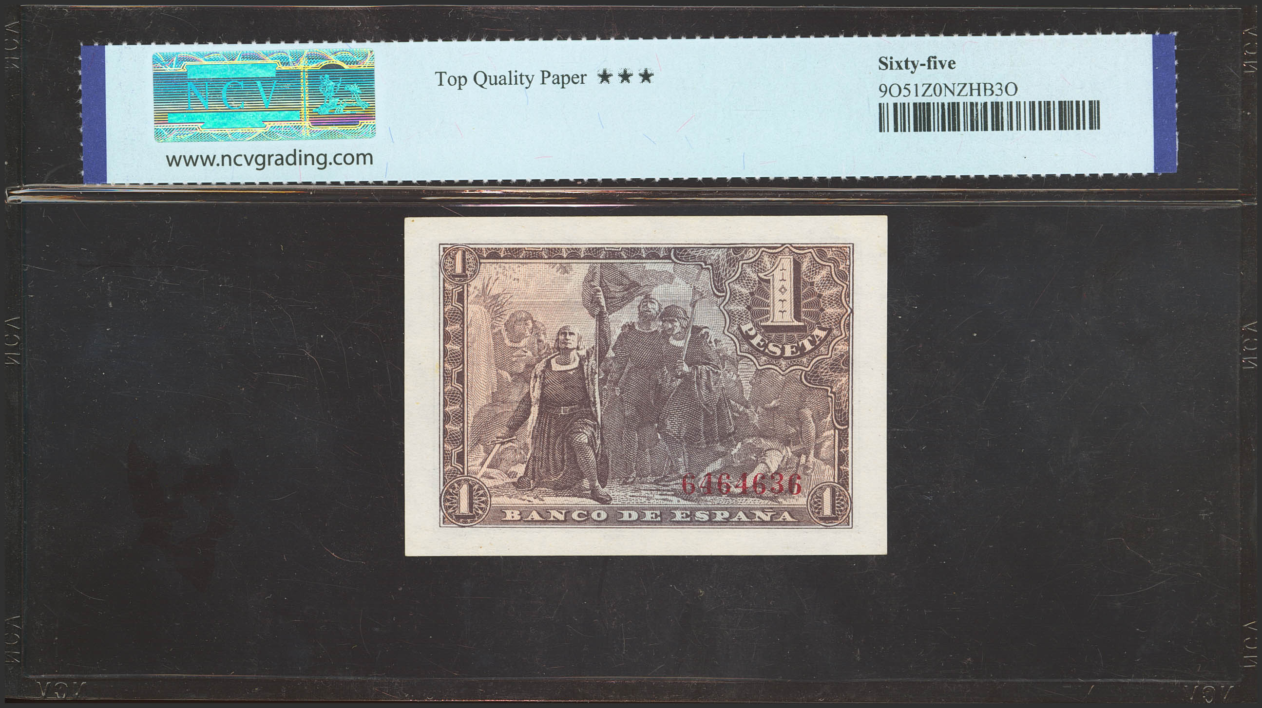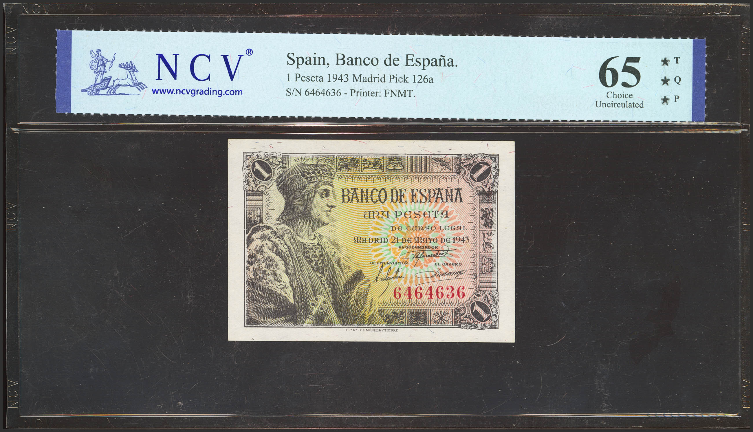 1 Peseta. 21 de Mayo de 1943. Sin serie. (Edifil 2023: 447, Pick: 126a). Apresto original. SC. Encapsulado NCV65TQP.