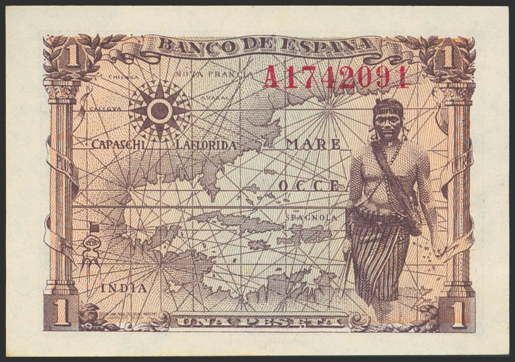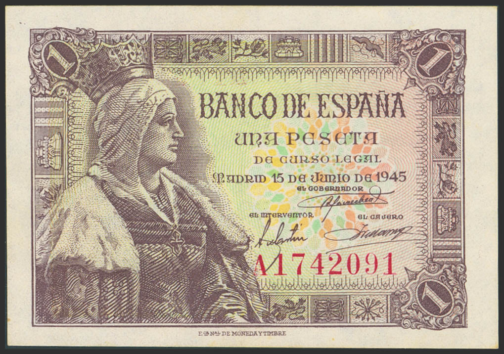 1 Peseta. 15 de Junio de 1945. Serie A. (Edifil 2023: 448a). Apresto original. SC-.