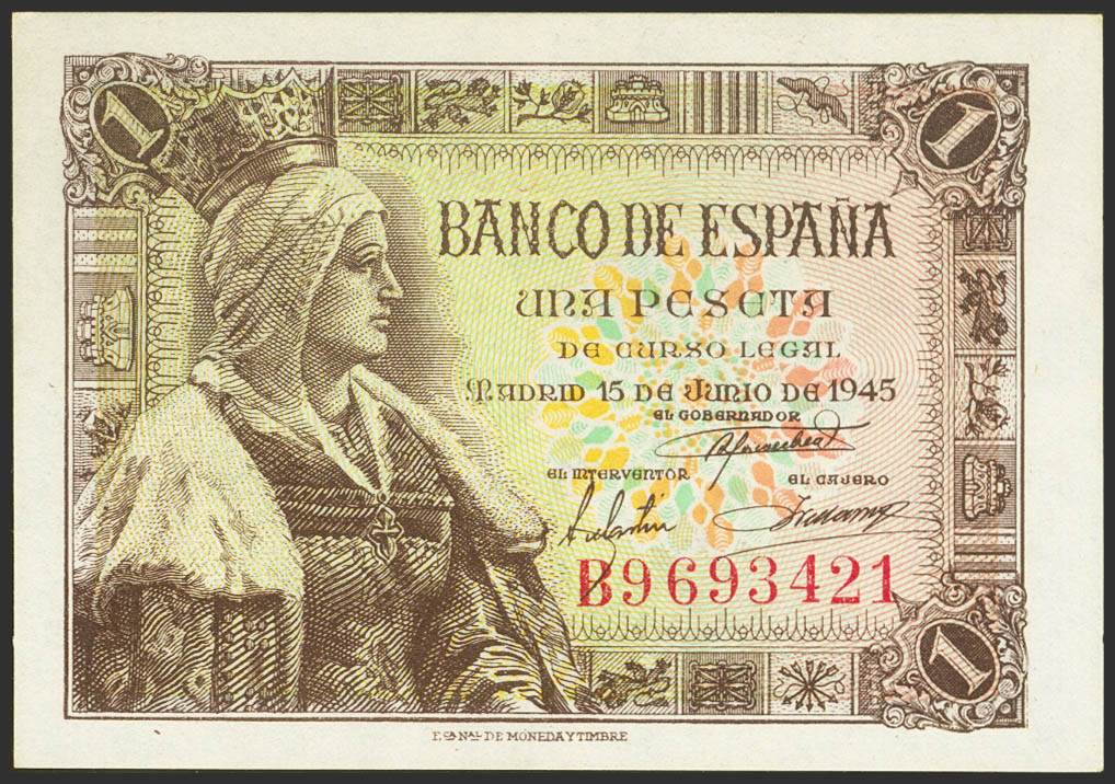 1 Peseta. 15 de Junio de 1945. Serie B. (Edifil 2021: 448a). Apresto original. SC.