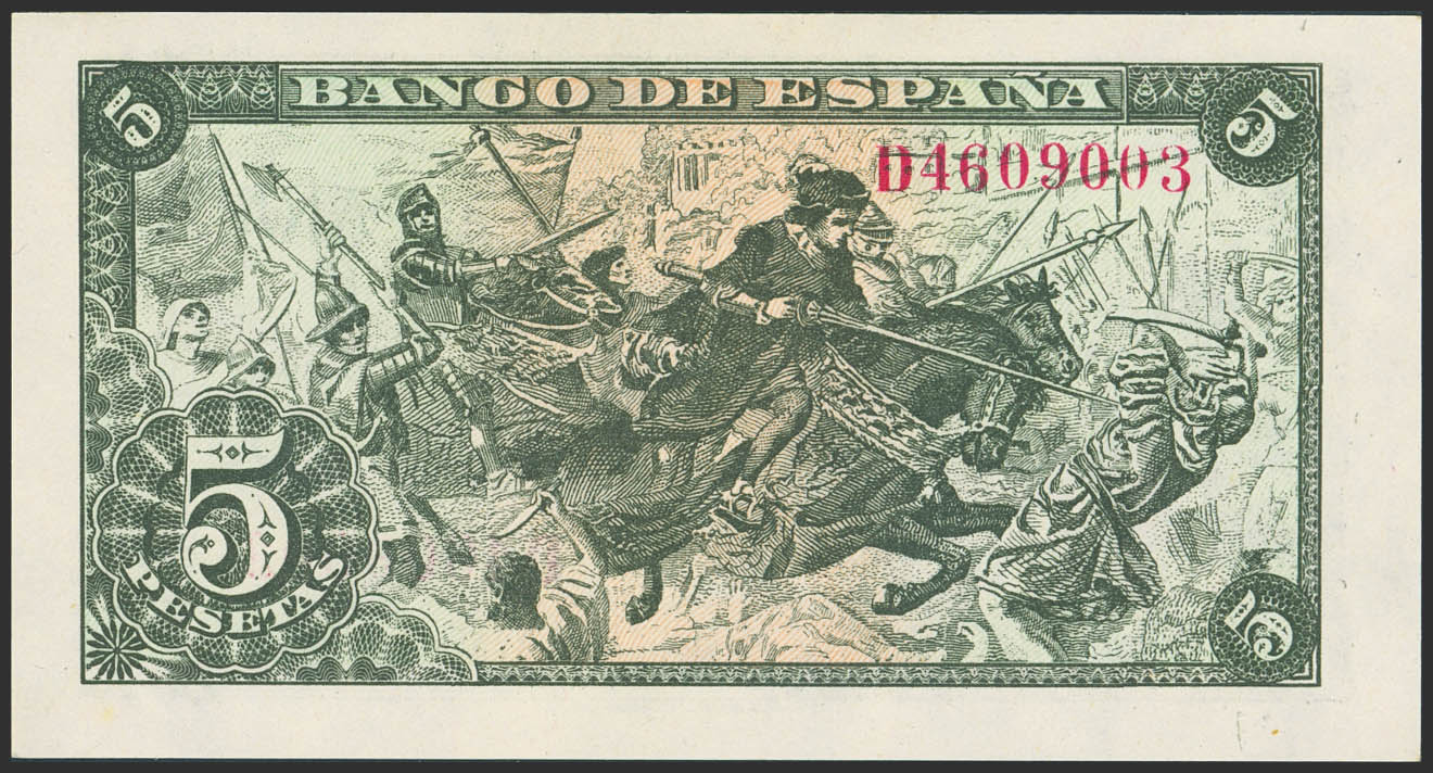 5 Pesetas. 15 de Junio de 1945. Serie D. (Edifil 2021: 449a). Apresto original. SC.