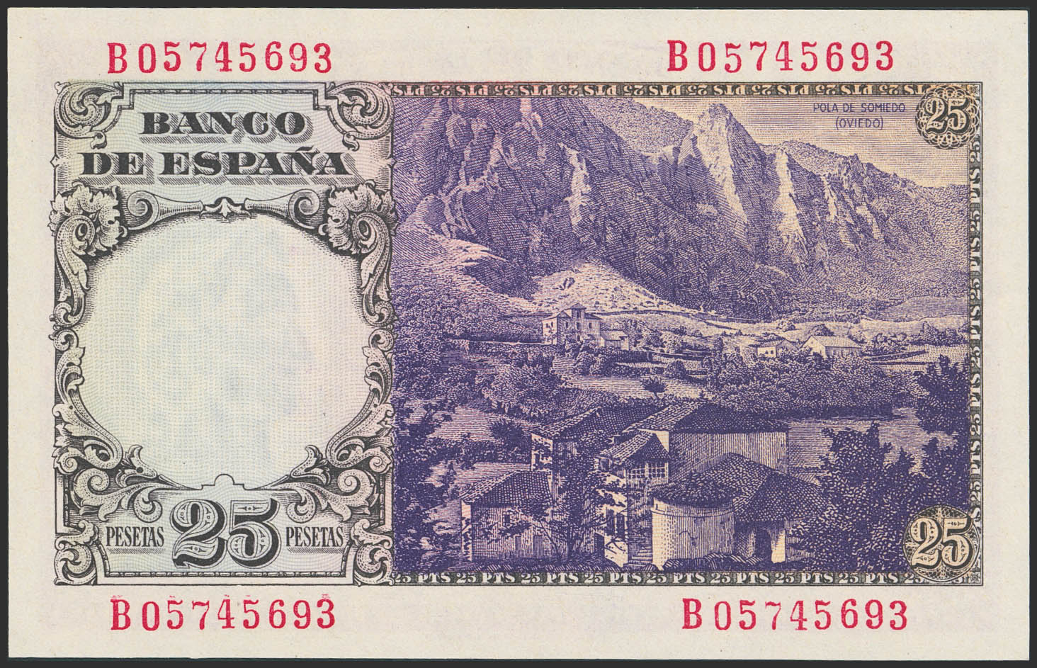 25 Pesetas. 19 de Febrero de 1946. Serie B. (Edifil 2023: 450a). Apresto original. SC.