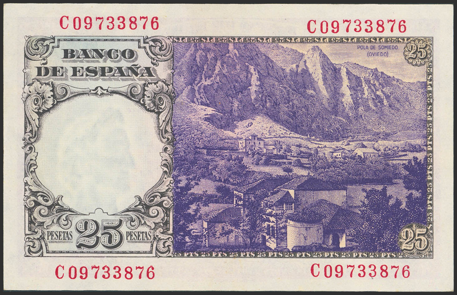 25 Pesetas. 19 de Febrero de 1946. Serie C. (Edifil 2023: 450a). Apresto original. SC.
