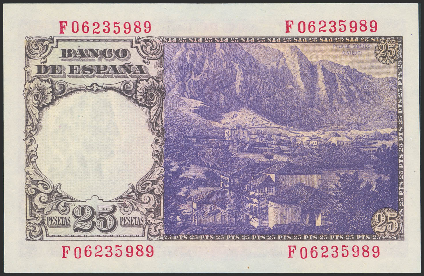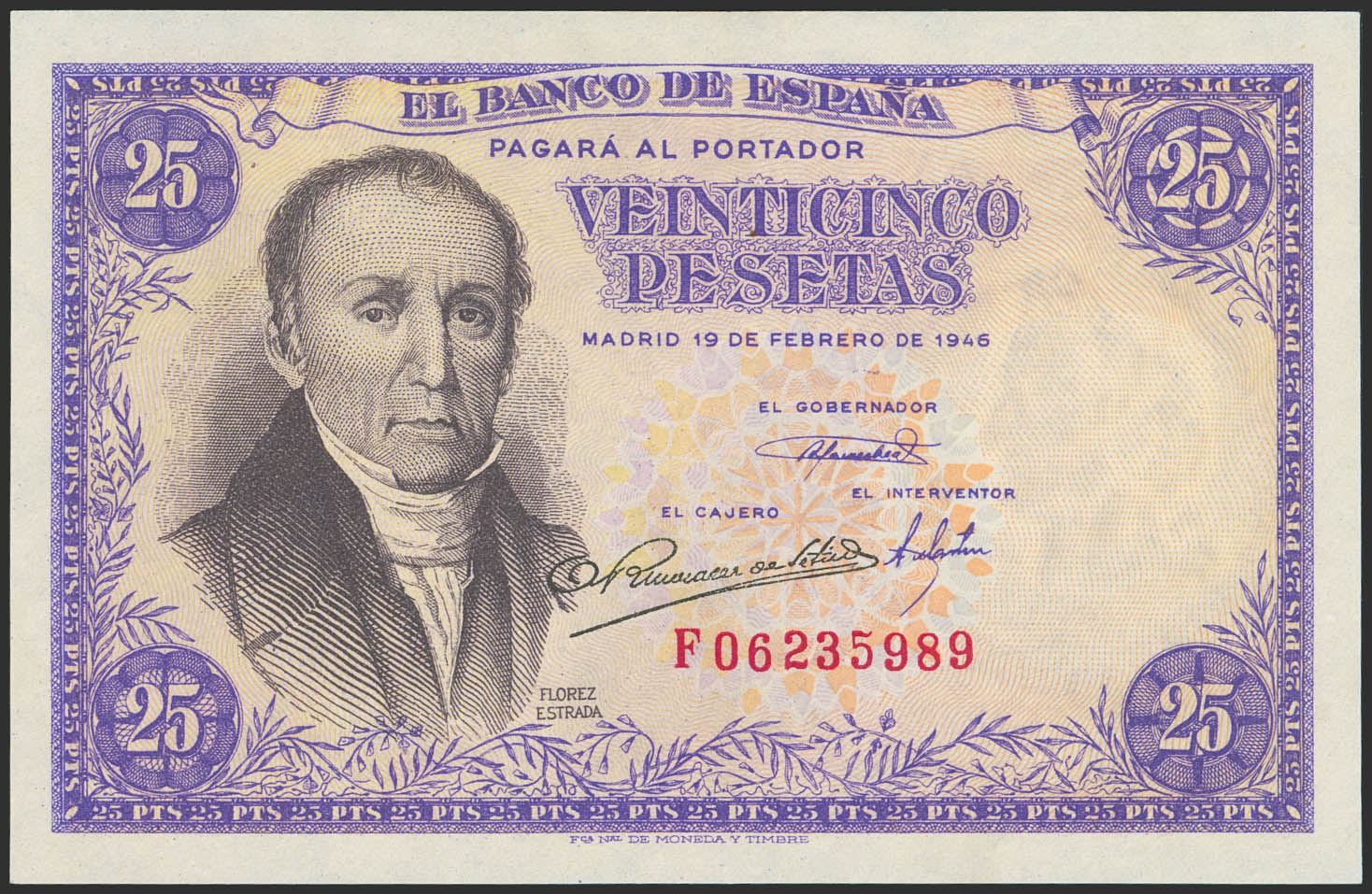 25 Pesetas. 19 de Febrero de 1946. Serie F. (Edifil 2023: 450a). Apresto original. SC.