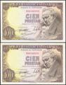 100 Pesetas. 19 de Febrero de 1946. Pareja correlativa. Serie B. (Edifil 2021: 451b). Apresto original. SC--.
