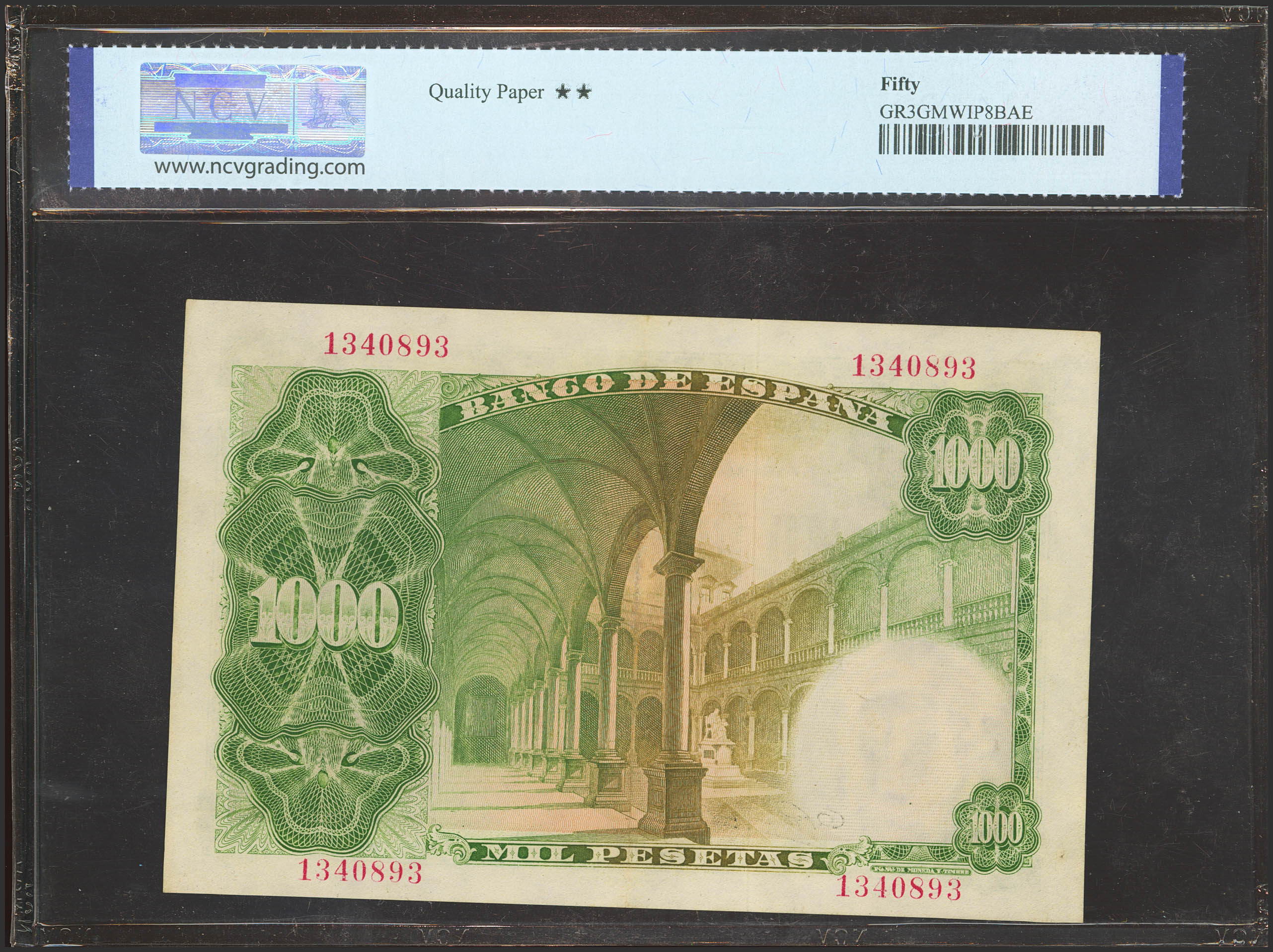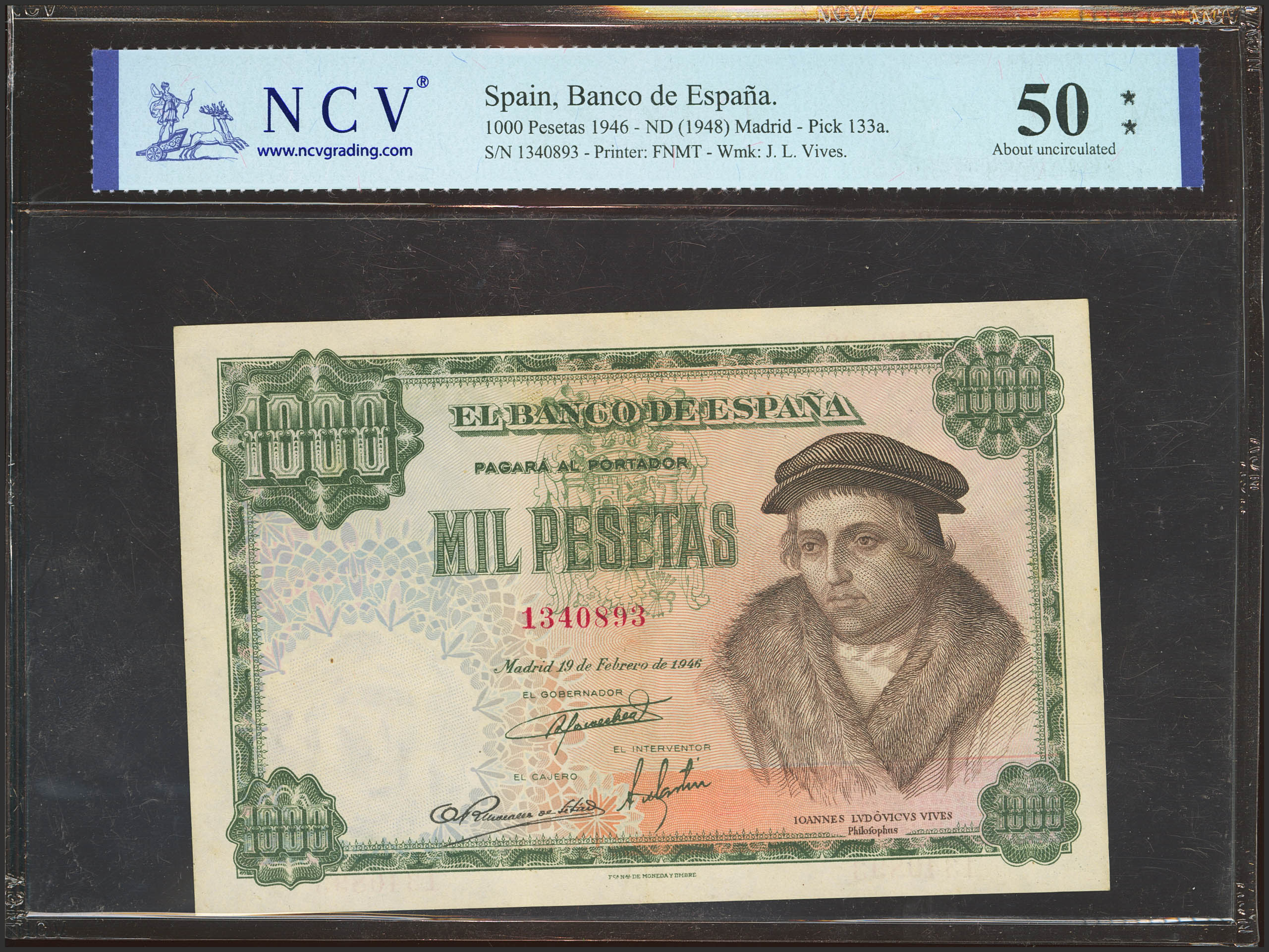 1000 Pesetas. 19 de Febrero de 1946. Sin serie. (Edifil 2023: 453, Pick: 133a). Inusual en esta calidad. EBC. Encapsulado NCV50.