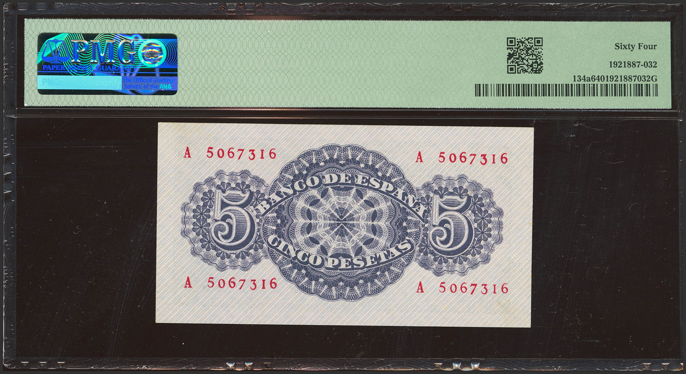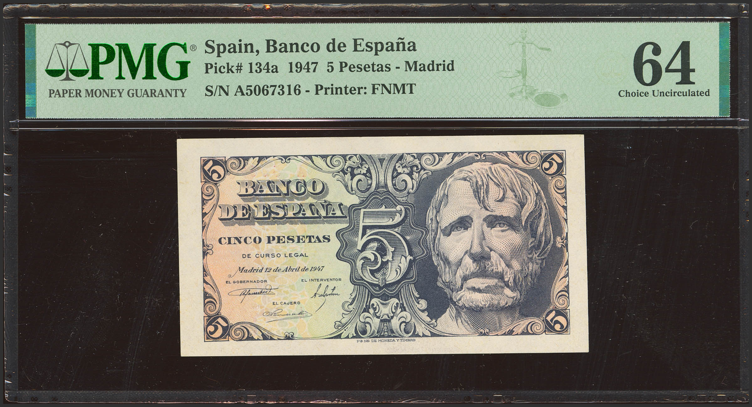 5 Pesetas. 12 de Abril de 1947. Serie A. (Edifil 2023: 454a, Pick: 134a). SC. Encapsulado PMG64.