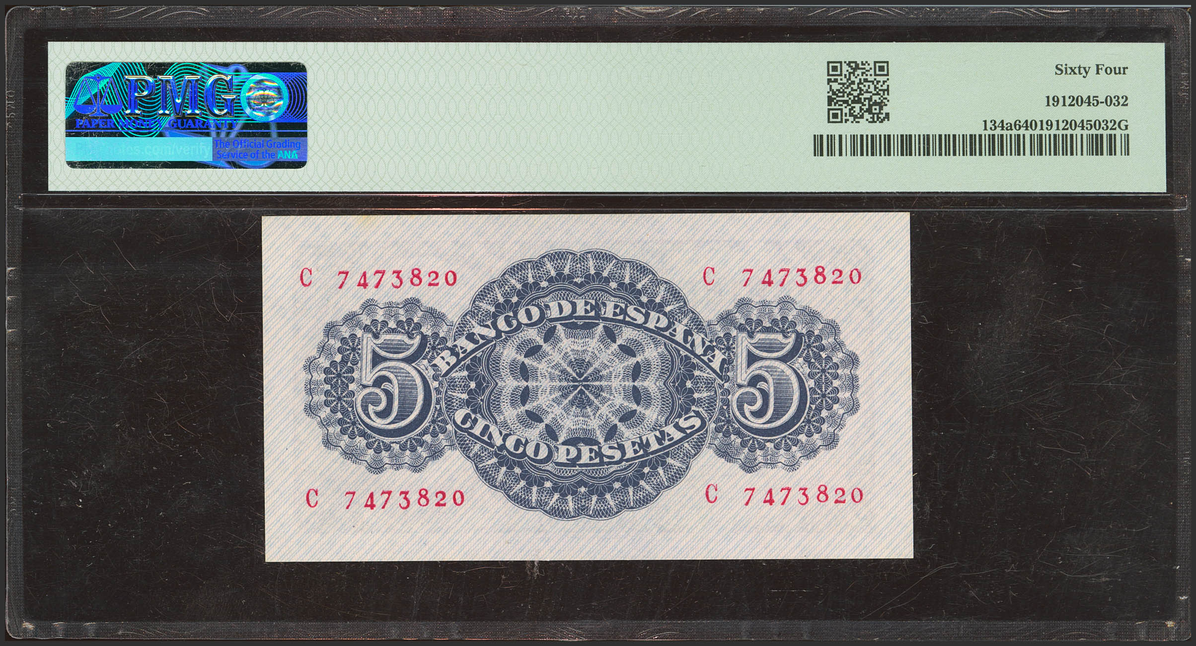 5 Pesetas. 12 de Abril de 1947. Serie C. (Edifil 2023: 454a, Pick: 134a). Apresto original. SC. Encapsulado PMG64.