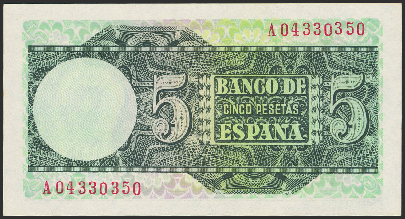 5 Pesetas. 5 de Marzo de 1948. Serie A. (Edifil 2023: 455a). Apresto original. SC.