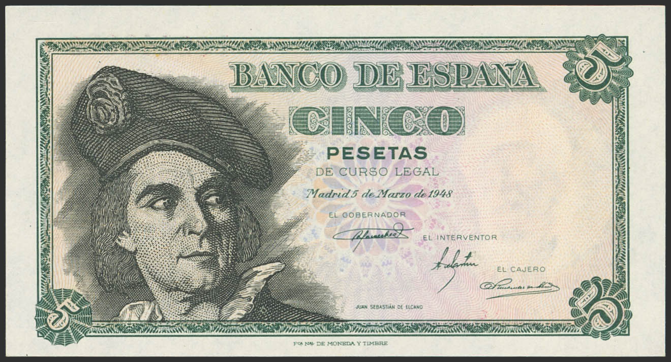 5 Pesetas. 5 de Marzo de 1948. Serie I. (Edifil 2023: 455a). Apresto original. SC.
