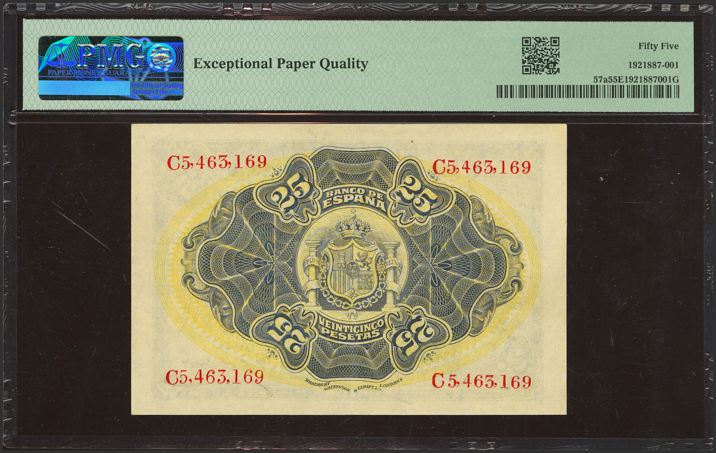 25 Pesetas. 24 de Septiembre de 1906. Serie C. (Edifil 2023: 314a, Pick: 57a). Inusual en esta calidad, apresto original. EBC+. Encapsulado PMG55EPQ.