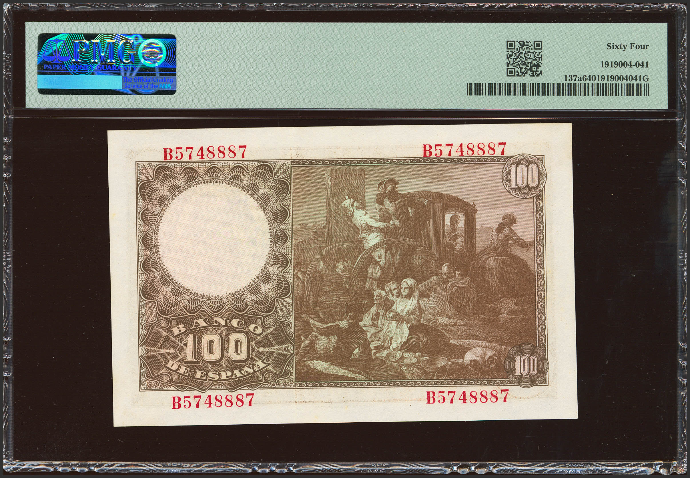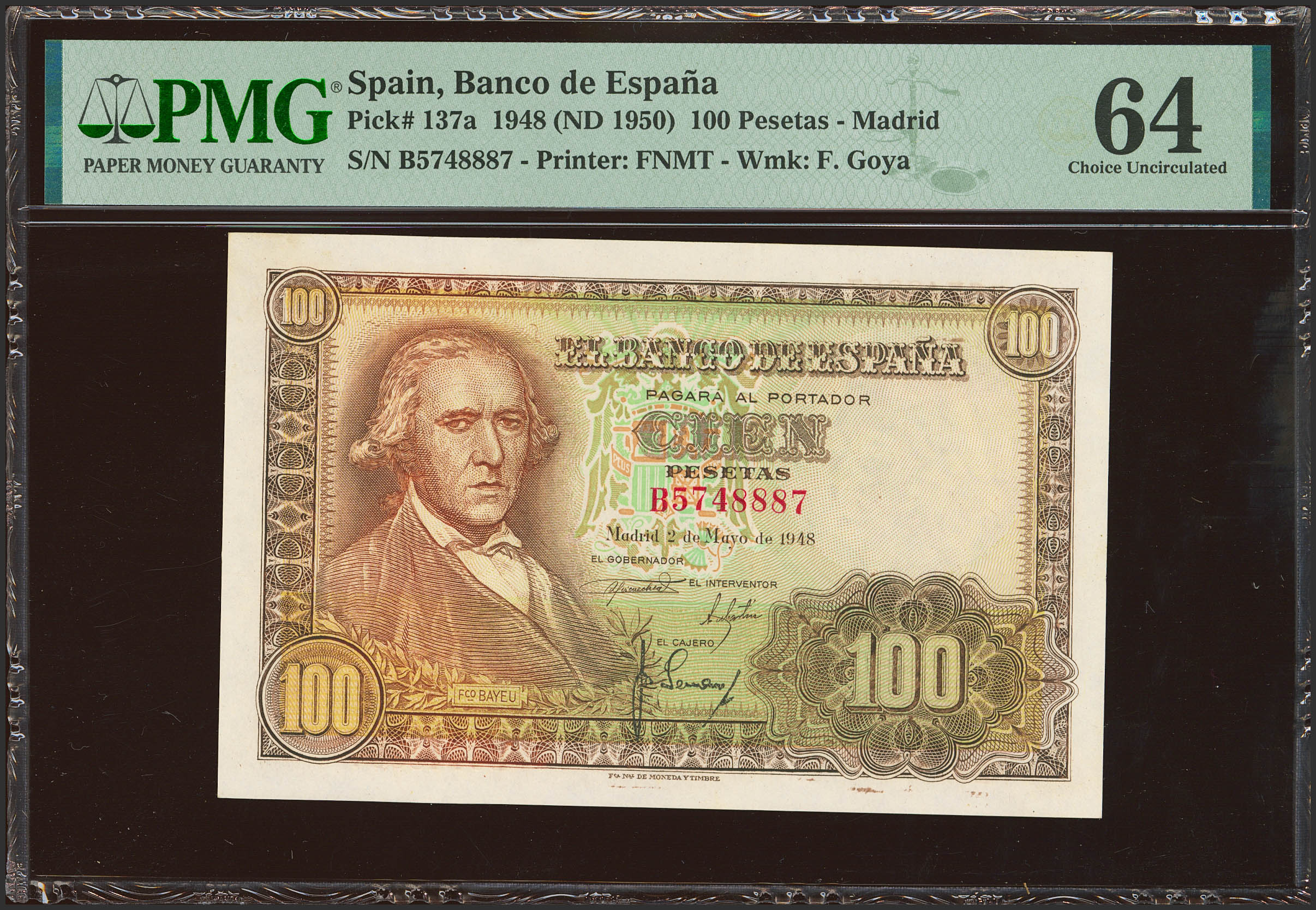 100 Pesetas. 2 de Mayo de 1948. Serie B. (Edifil 2023: 456a, Pick: 137a). SC. Encapsulado PMG64.