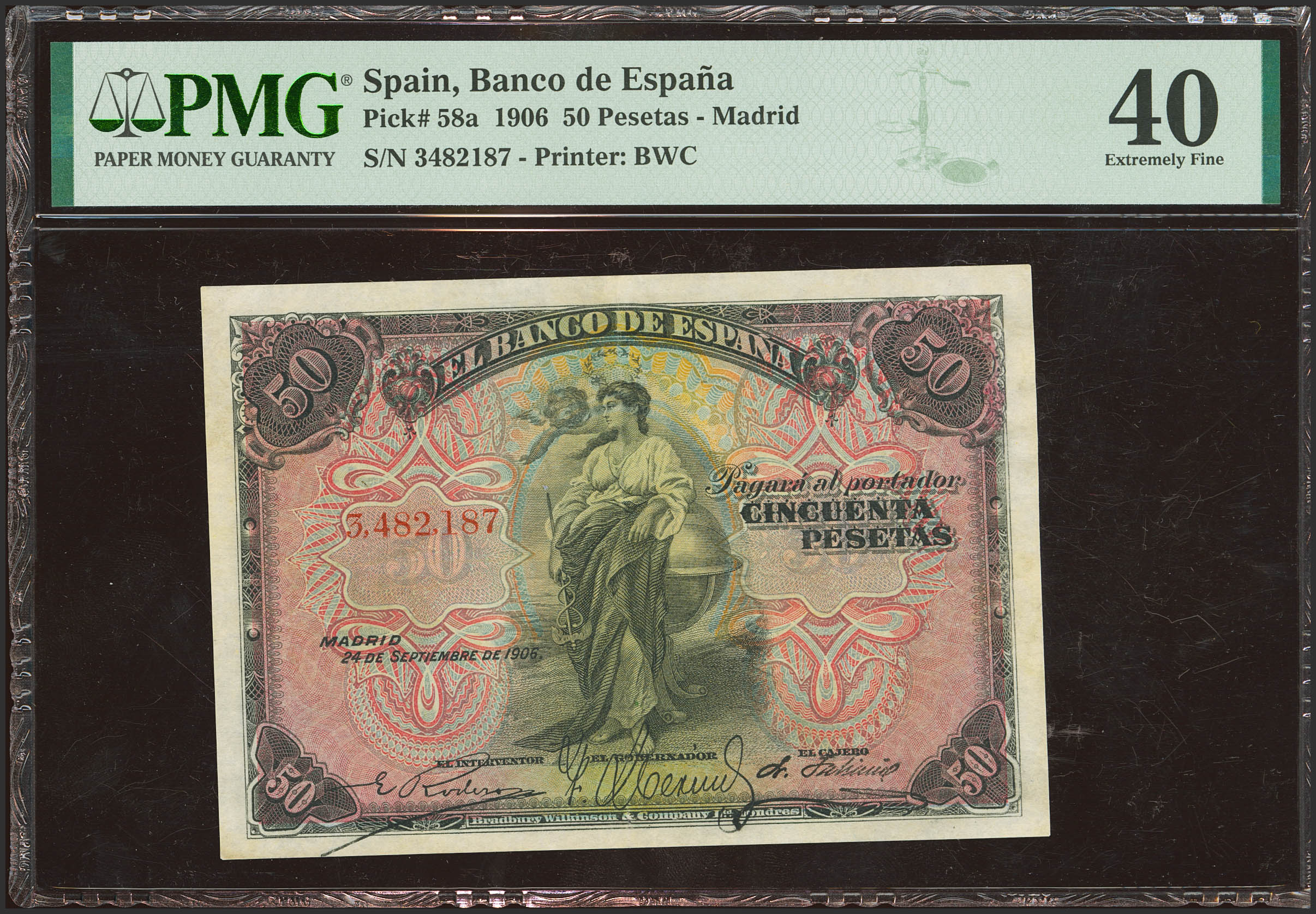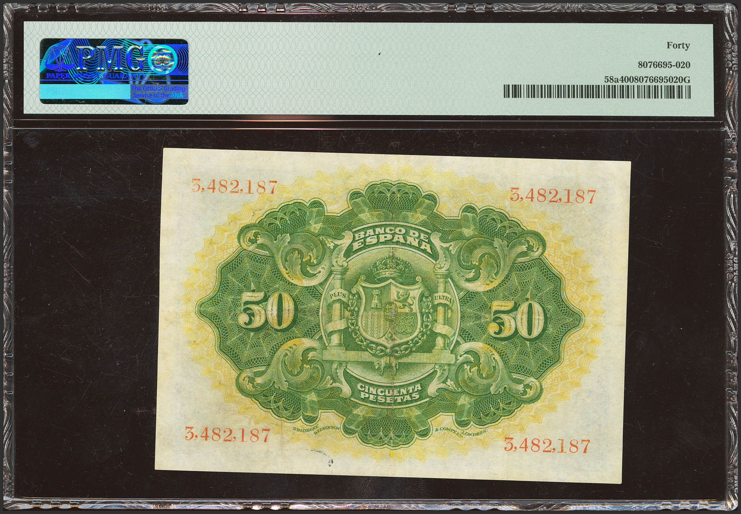 50 Pesetas. 24 de Septiembre de 1906. Sin serie. (Edifil 2023: 315, Pick: 58a). EBC-. Encapsulado PMG40.