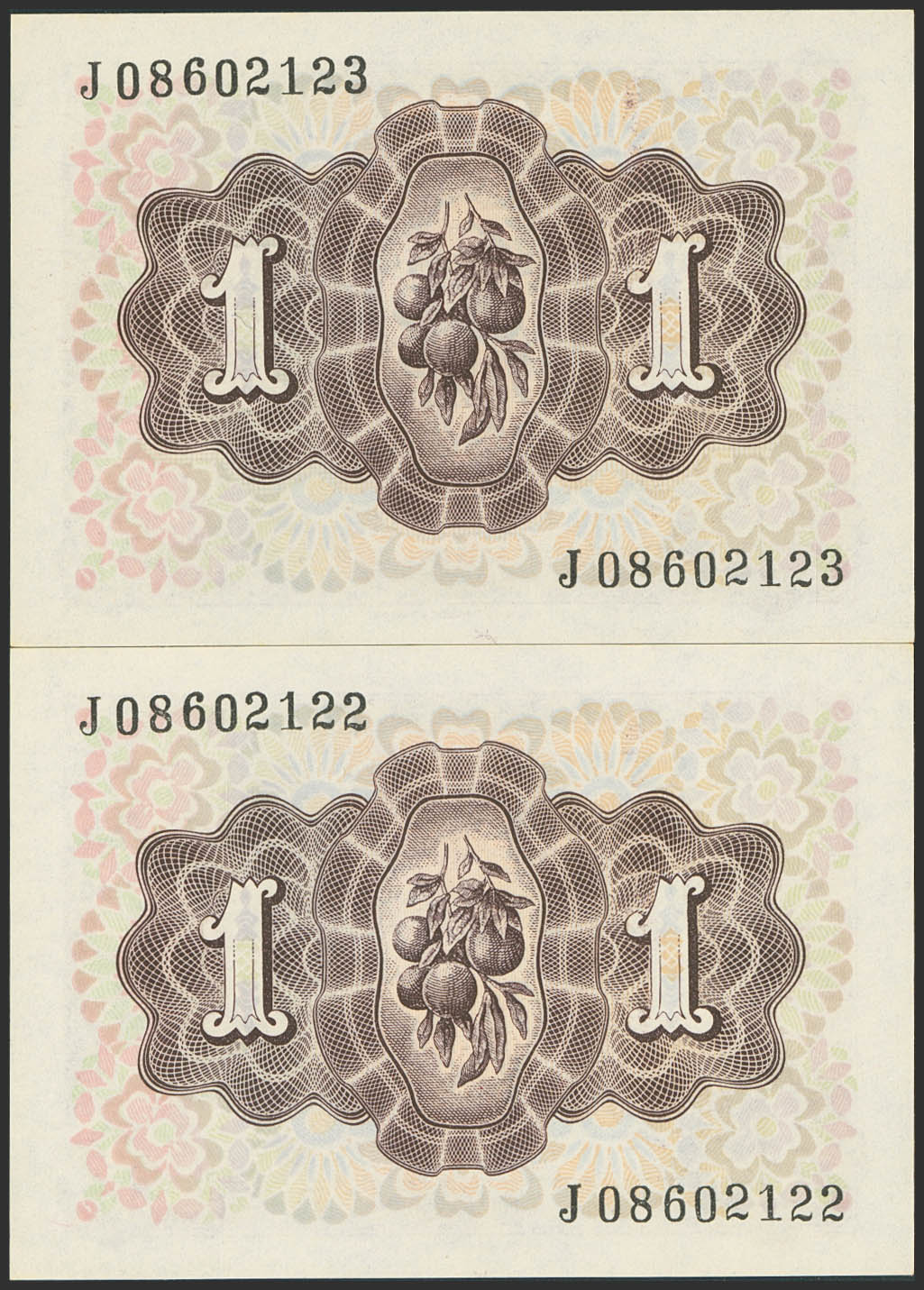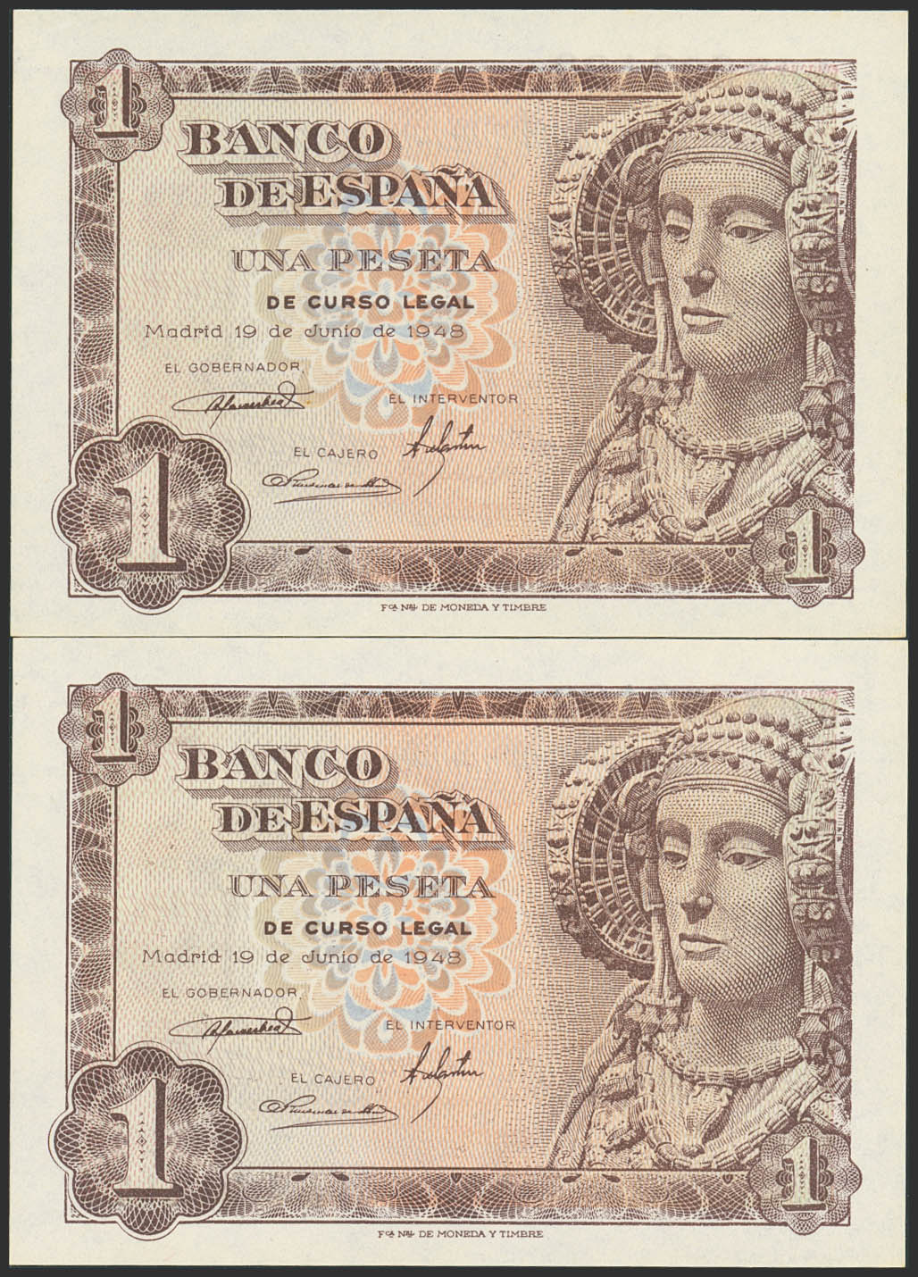 1 Peseta. 19 de Junio de 1948. Pareja correlativa. Serie J. (Edifil 2023: 457a). Apresto original. SC.