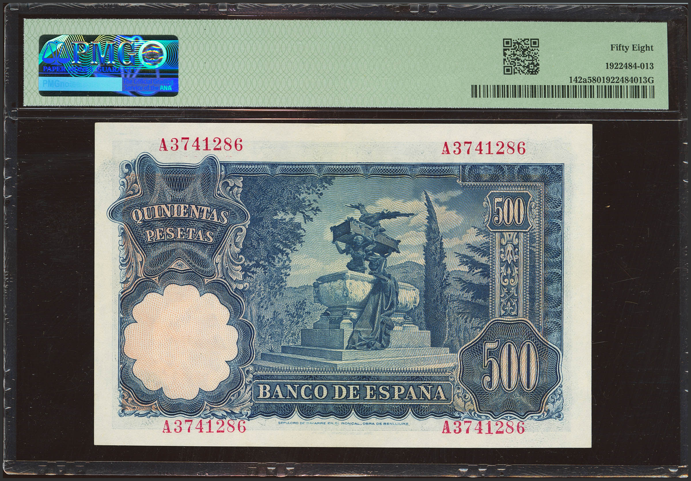 500 Pesetas. 15 de Noviembre de 1951. Serie A. (Edifil 2023: 460a, Pick: 142a). EBC++. Encapsulado PMG58.