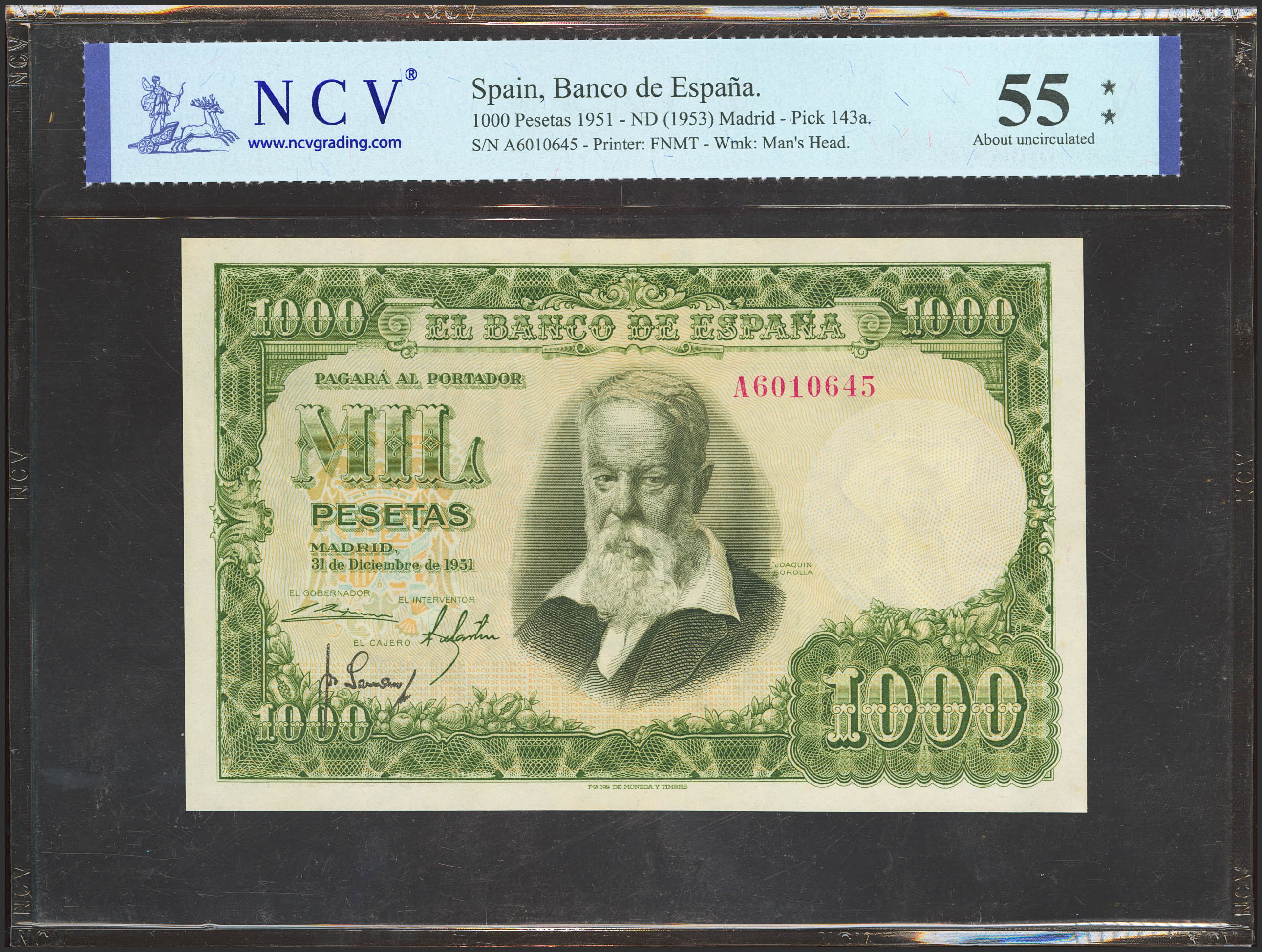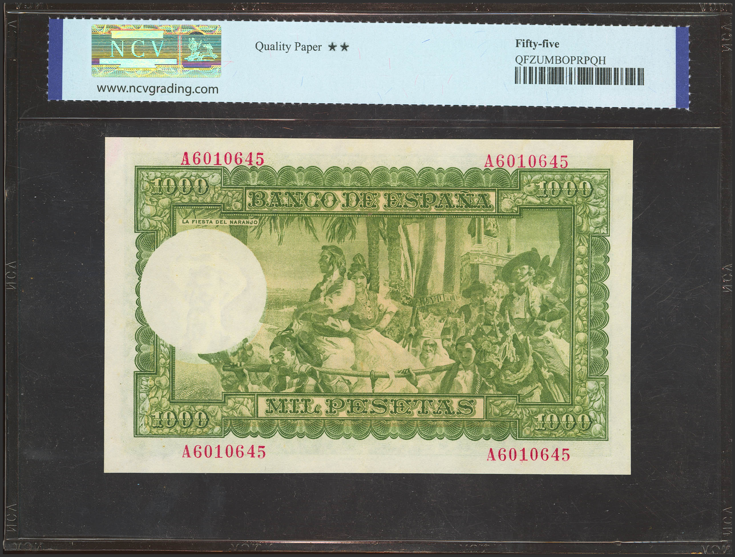 1000 Pesetas. 31 de Diciembre de 1951. Serie A. (Edifil 2023: 463a, Pick: 143a). EBC++. Encapsulado NCV55.