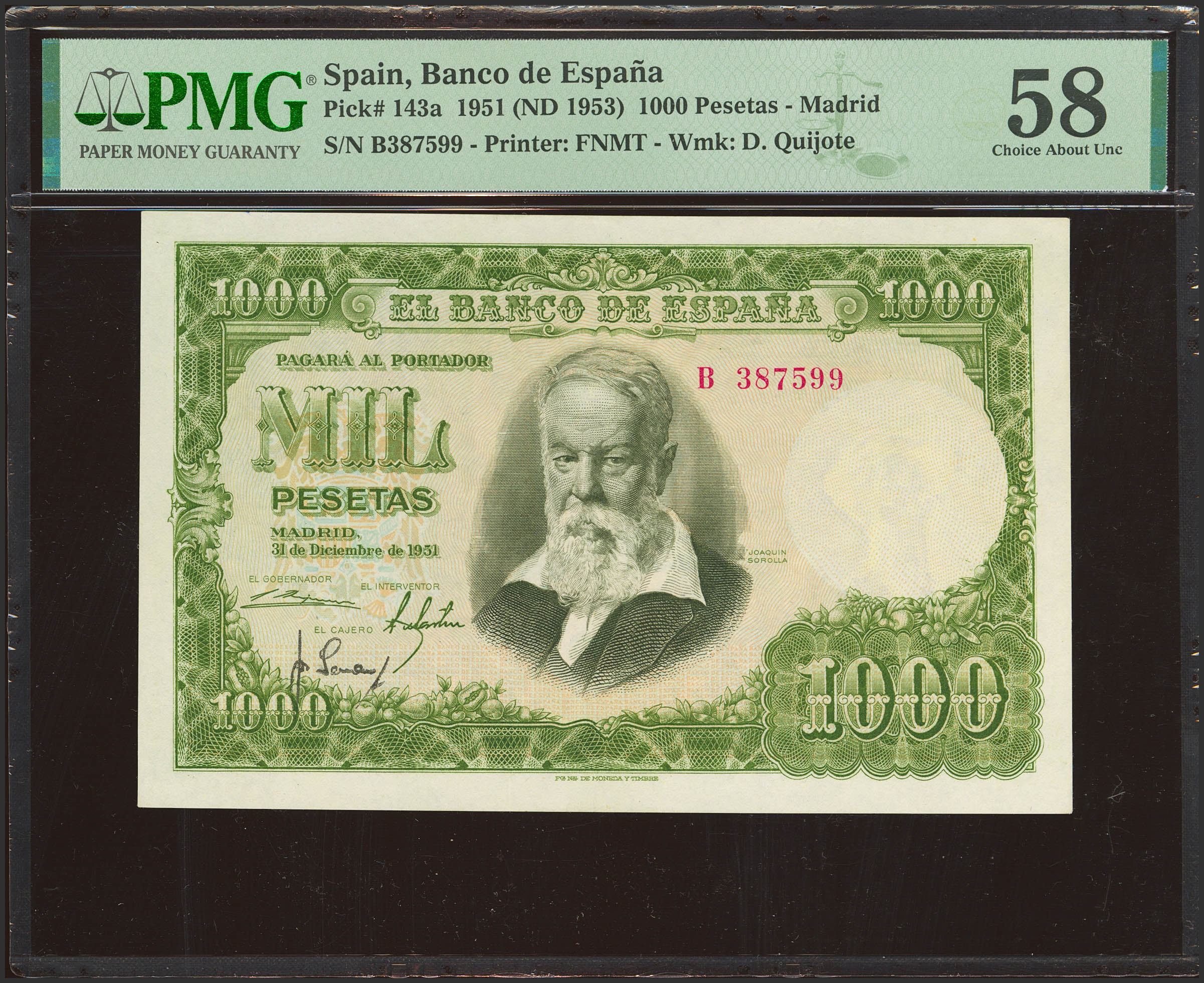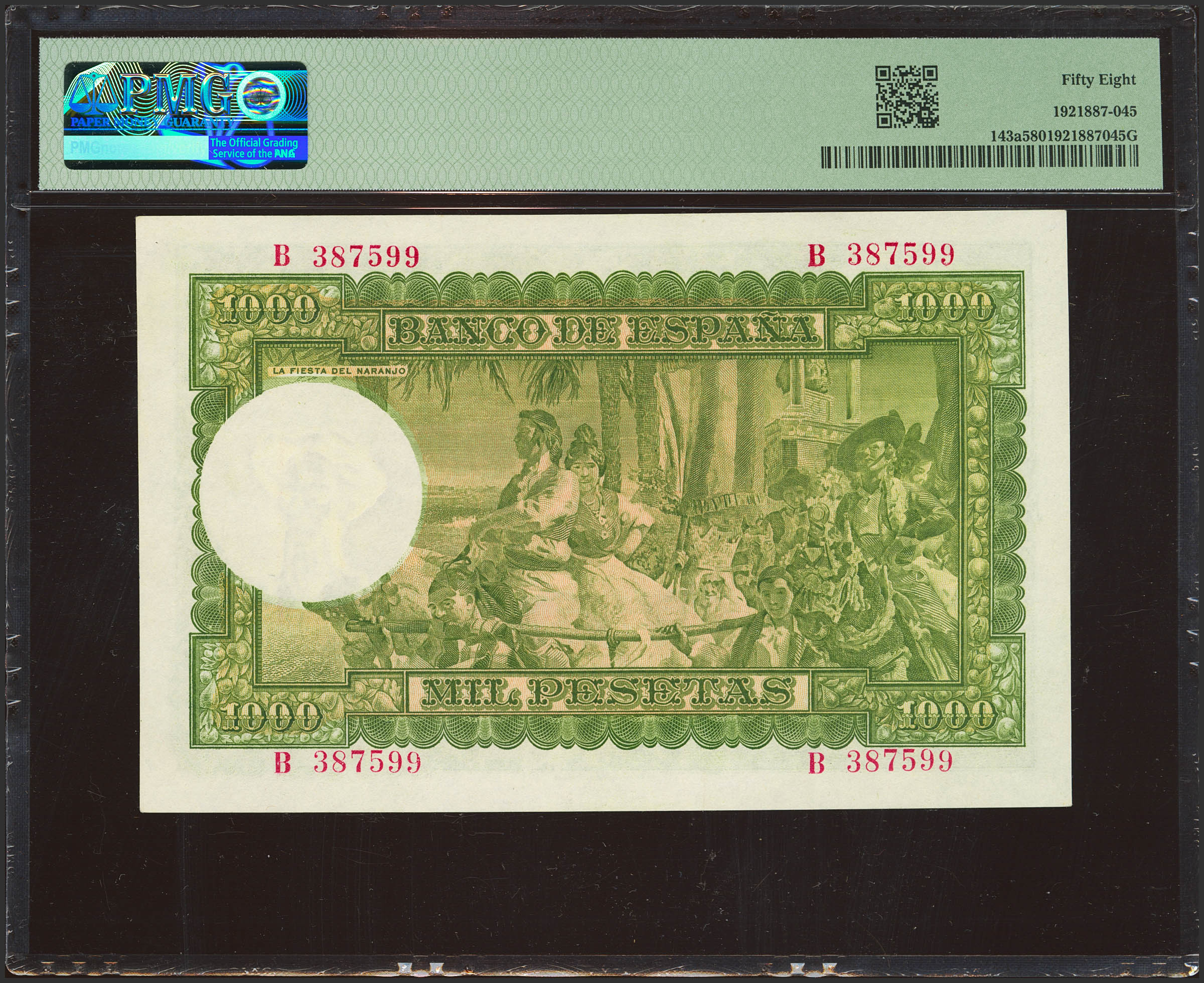 1000 Pesetas. 31 de Diciembre de 1951. Serie B. (Edifil 2023: 463a, Pick: 143a). EBC++. Encapsulado PMG58.