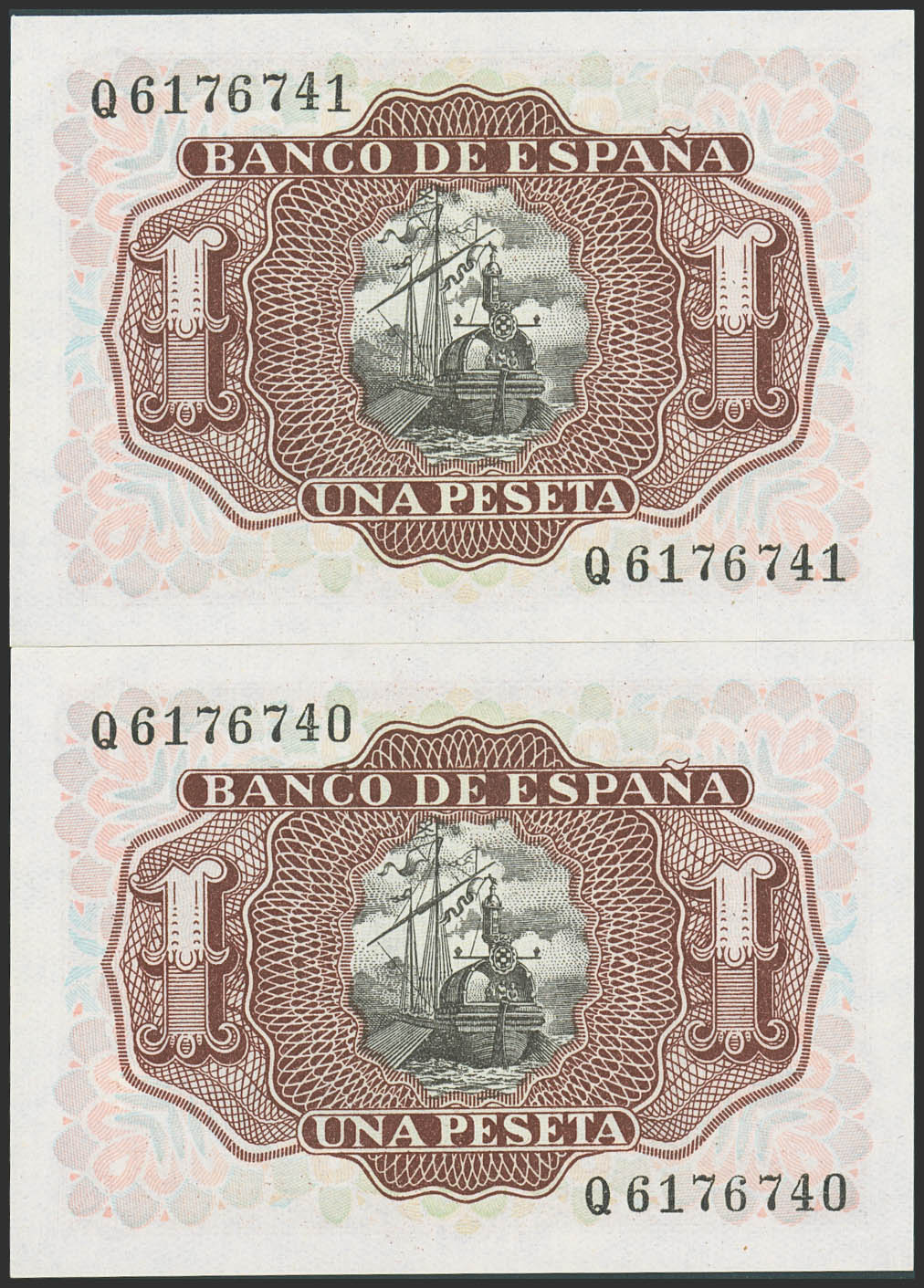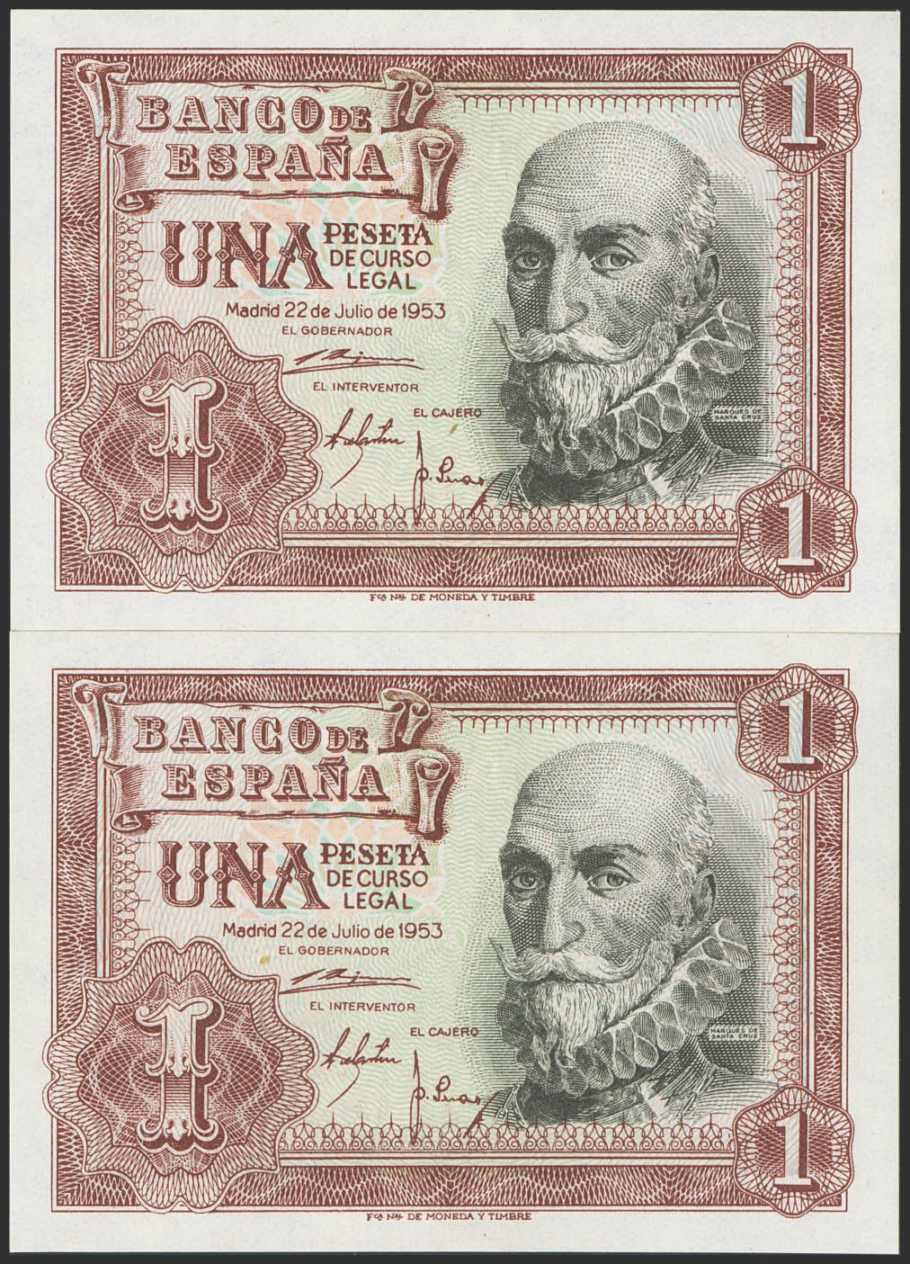 1 Peseta. 22 de Julio de 1953. Pareja correlativa. Serie Q. (Edifil 2023: 465a). Apresto original. SC.