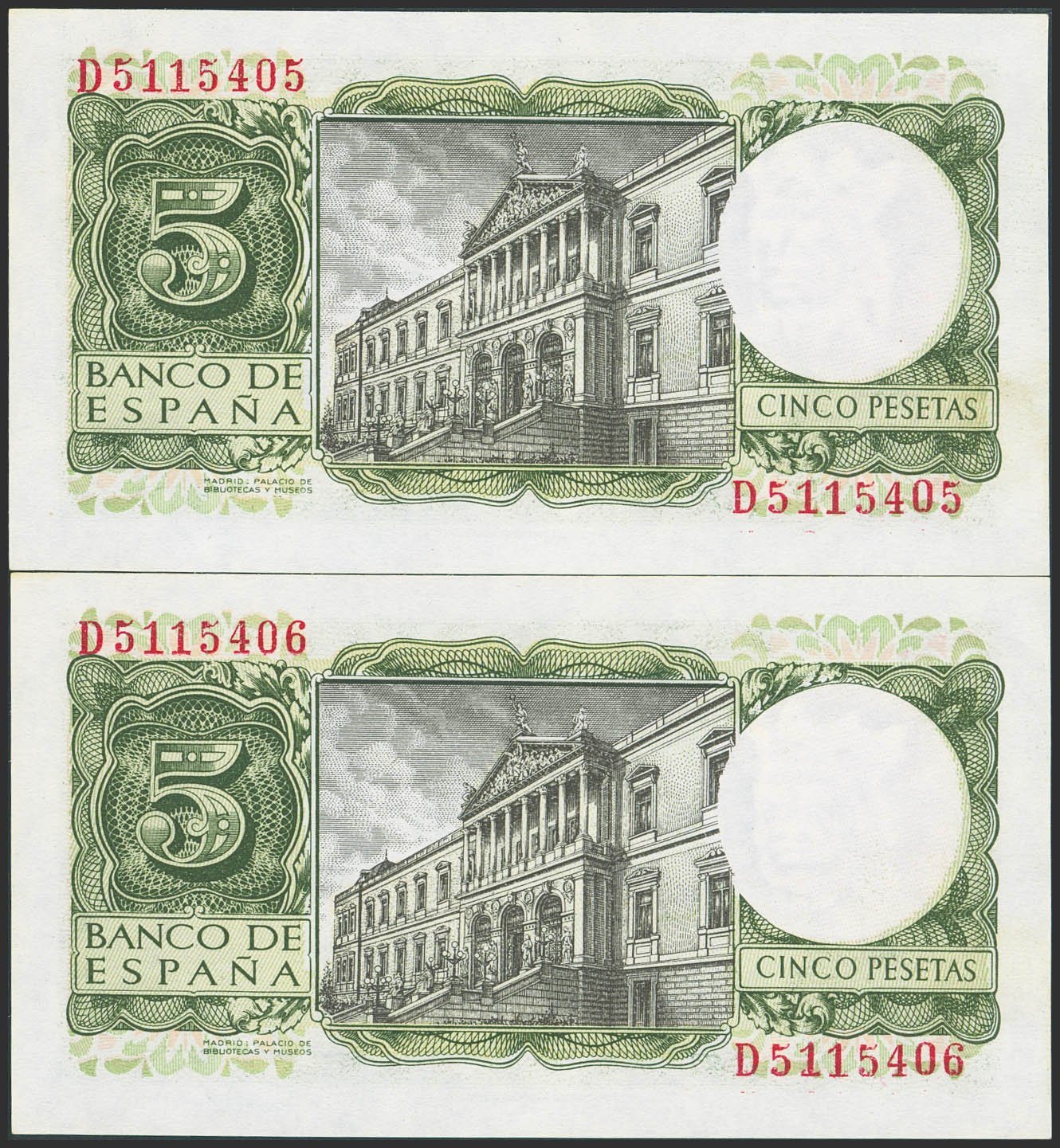 5 Pesetas. 22 de Julio de 1954. Pareja correlativa. Serie D. (Edifil 2023: 466a). Apresto original. SC.