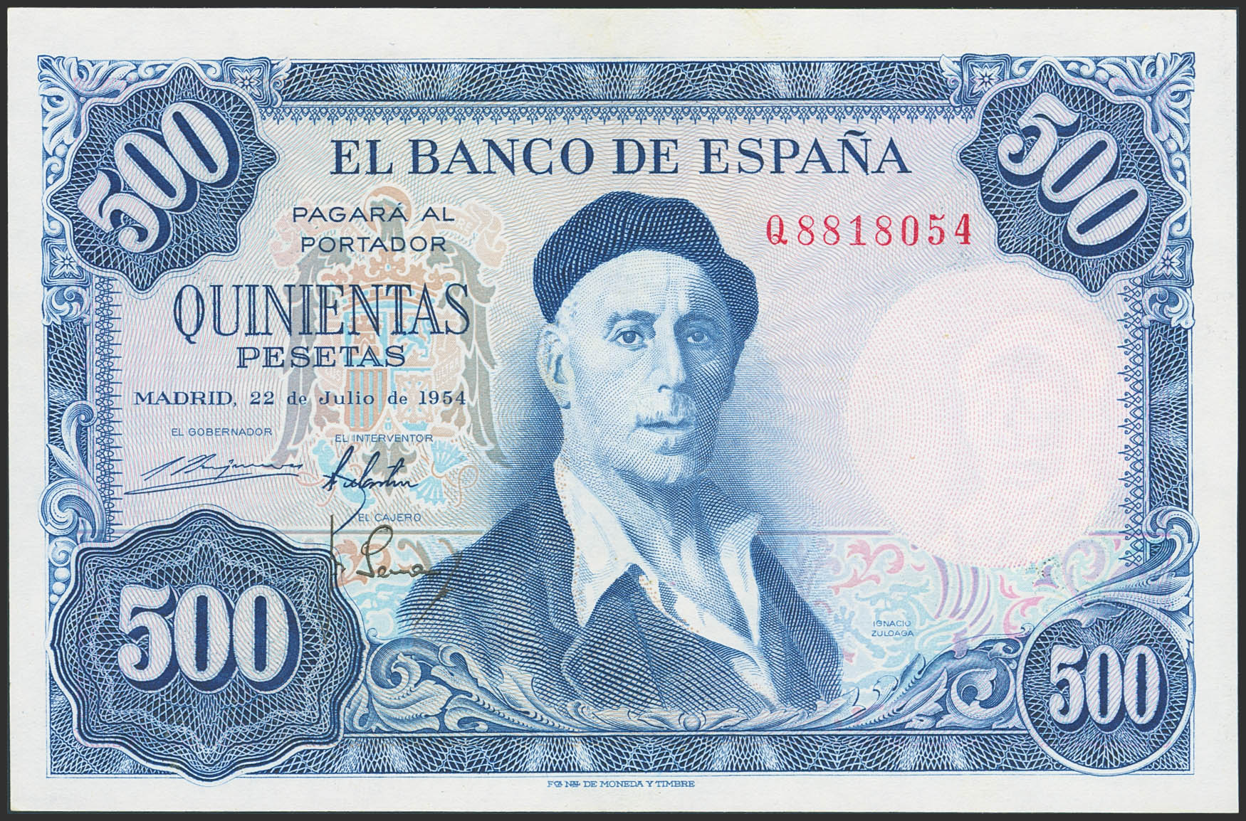 500 Pesetas. 22 de Julio de 1954. Serie Q. (Edifil 2023: 468b). Conserva parte de su apresto original. EBC.