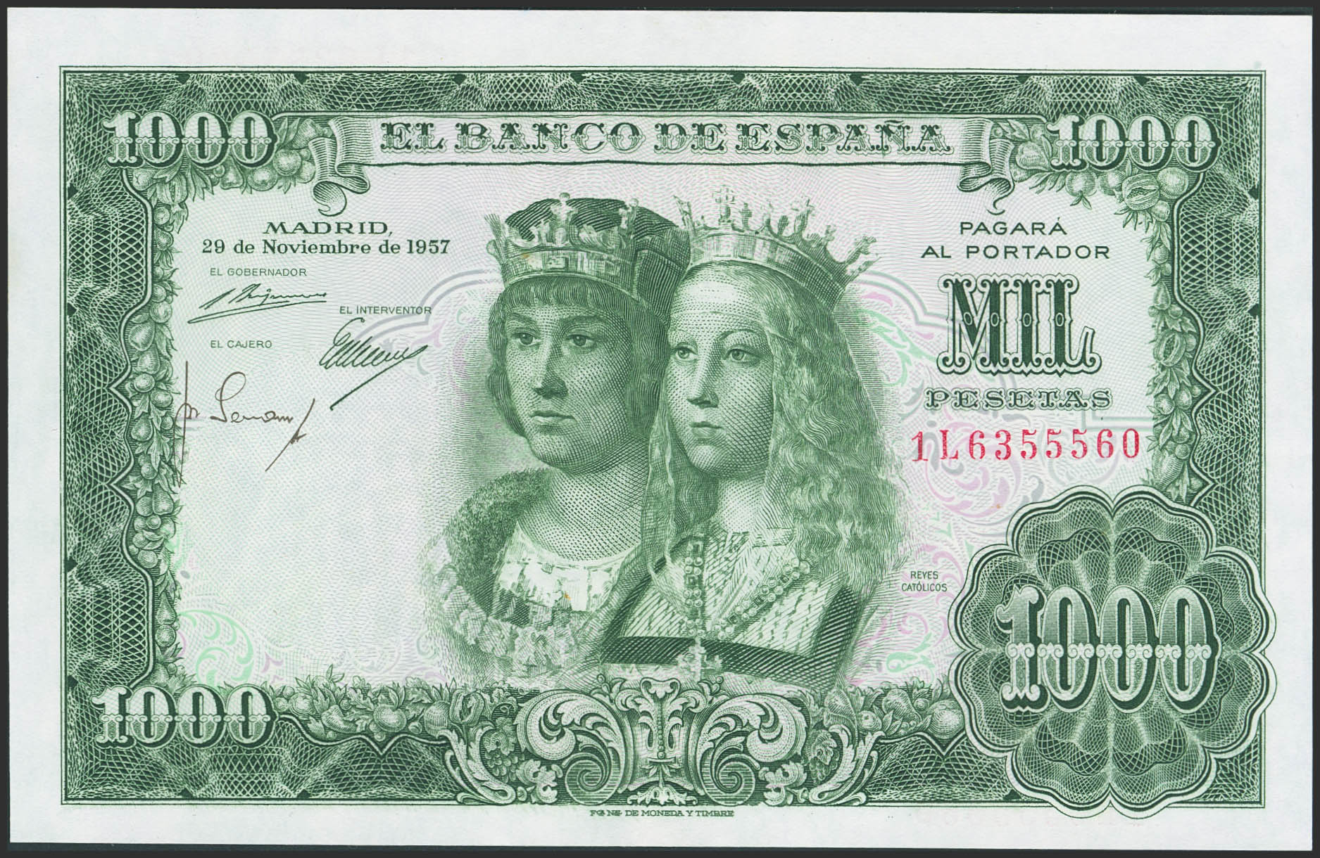 1000 Pesetas. 29 de Noviembre de 1957. Serie 1L. (Edifil 2023: 469b). Conserva todo su apresto original. EBC+++.