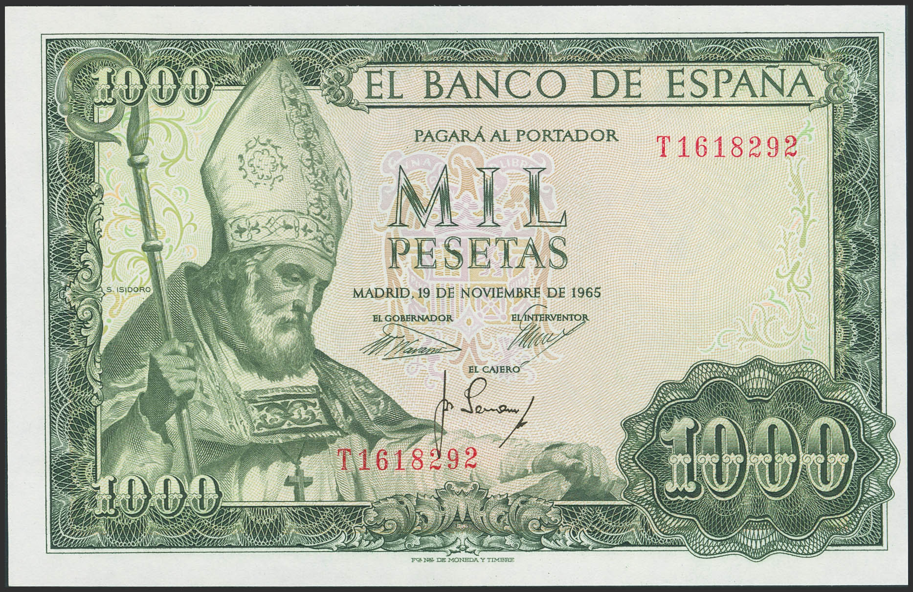 1000 Pesetas. 19 de Noviembre de 1965. Serie T. (Edifil 2023: 471b). Conserva todo su apresto original. SC.