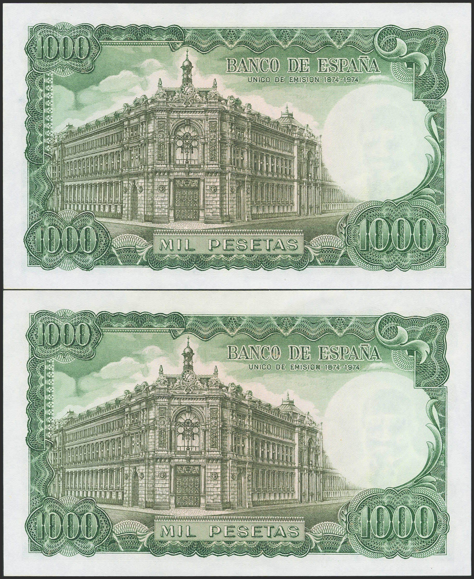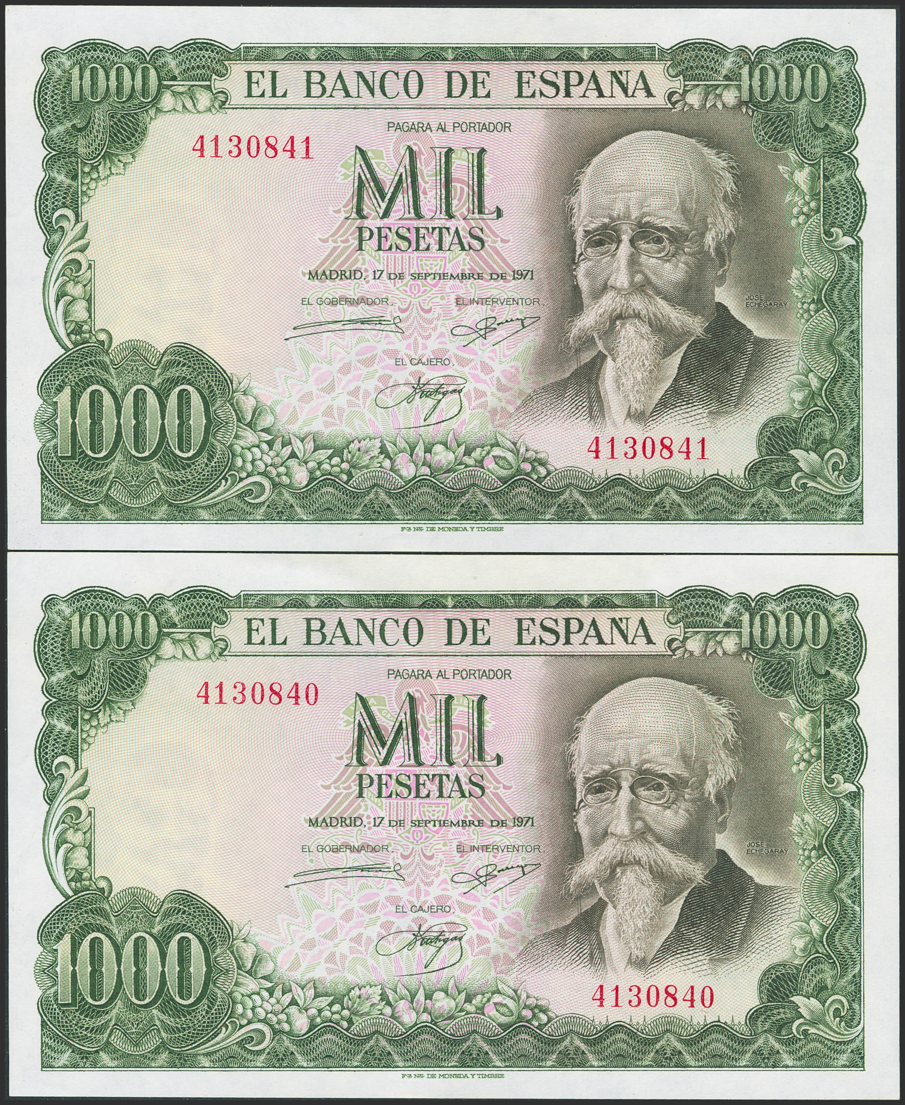 1000 Pesetas. 17 de Septiembre de 1971. Pareja correlativa. Sin serie. (Edifil 2023: 474). Conserva todo su apresto original. SC-.