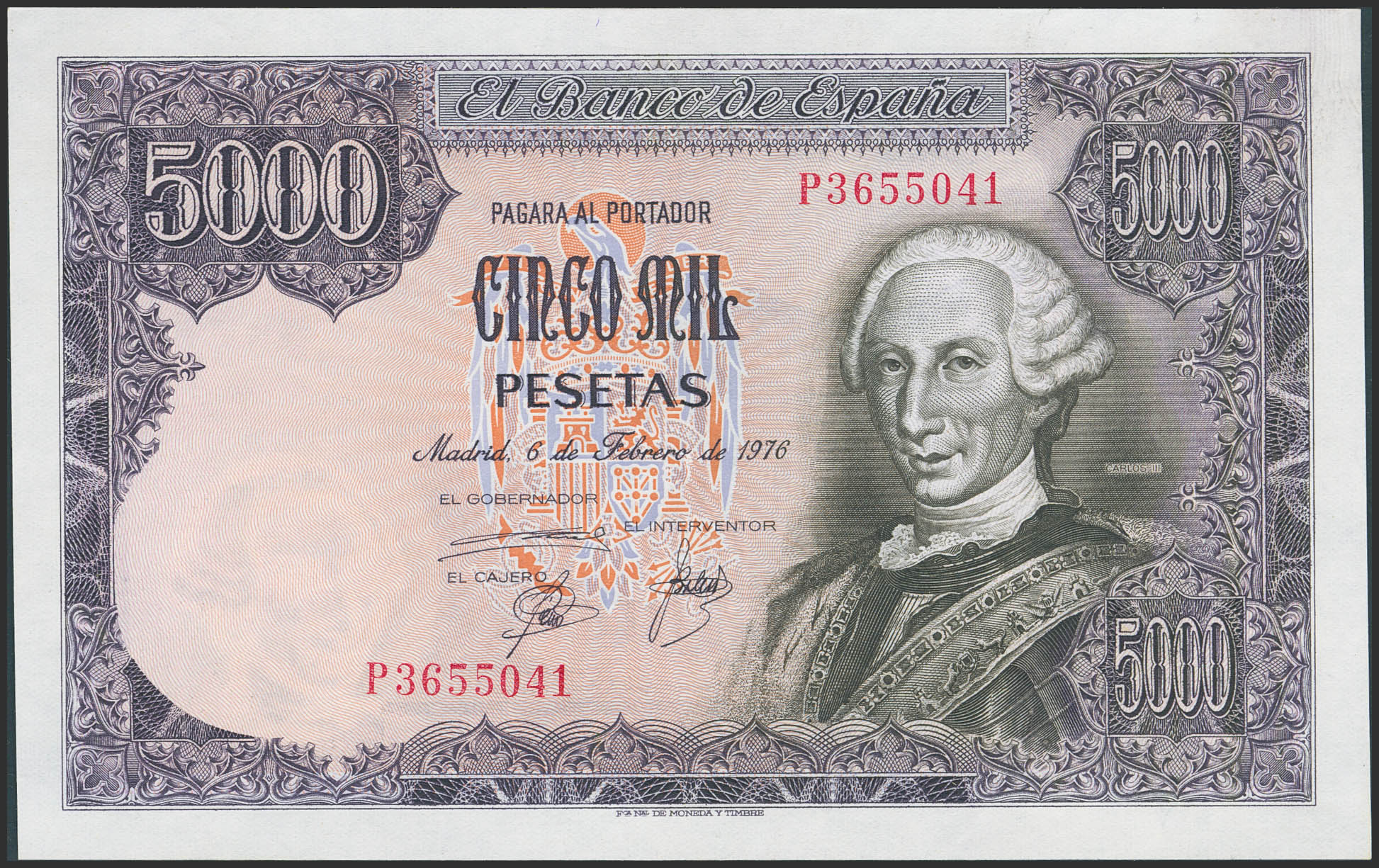 5000 Pesetas. 6 de Febrero de 1976. Serie P. (Edifil 2023: 475a). SC.