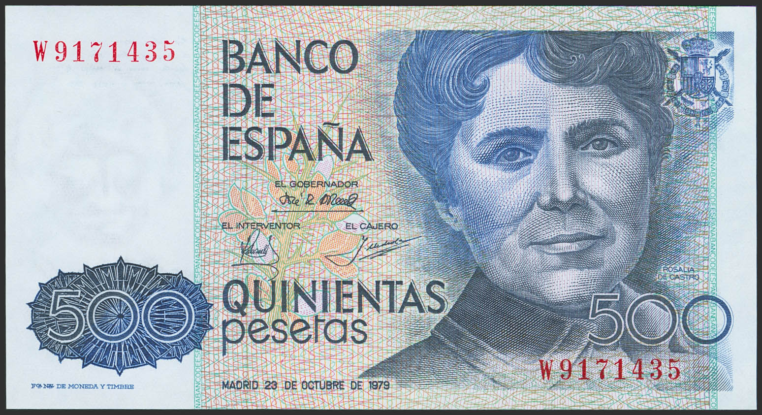 500 Pesetas. 23 de Octubre de 1979. Serie W. (Edifil 2023: 476a). SC.