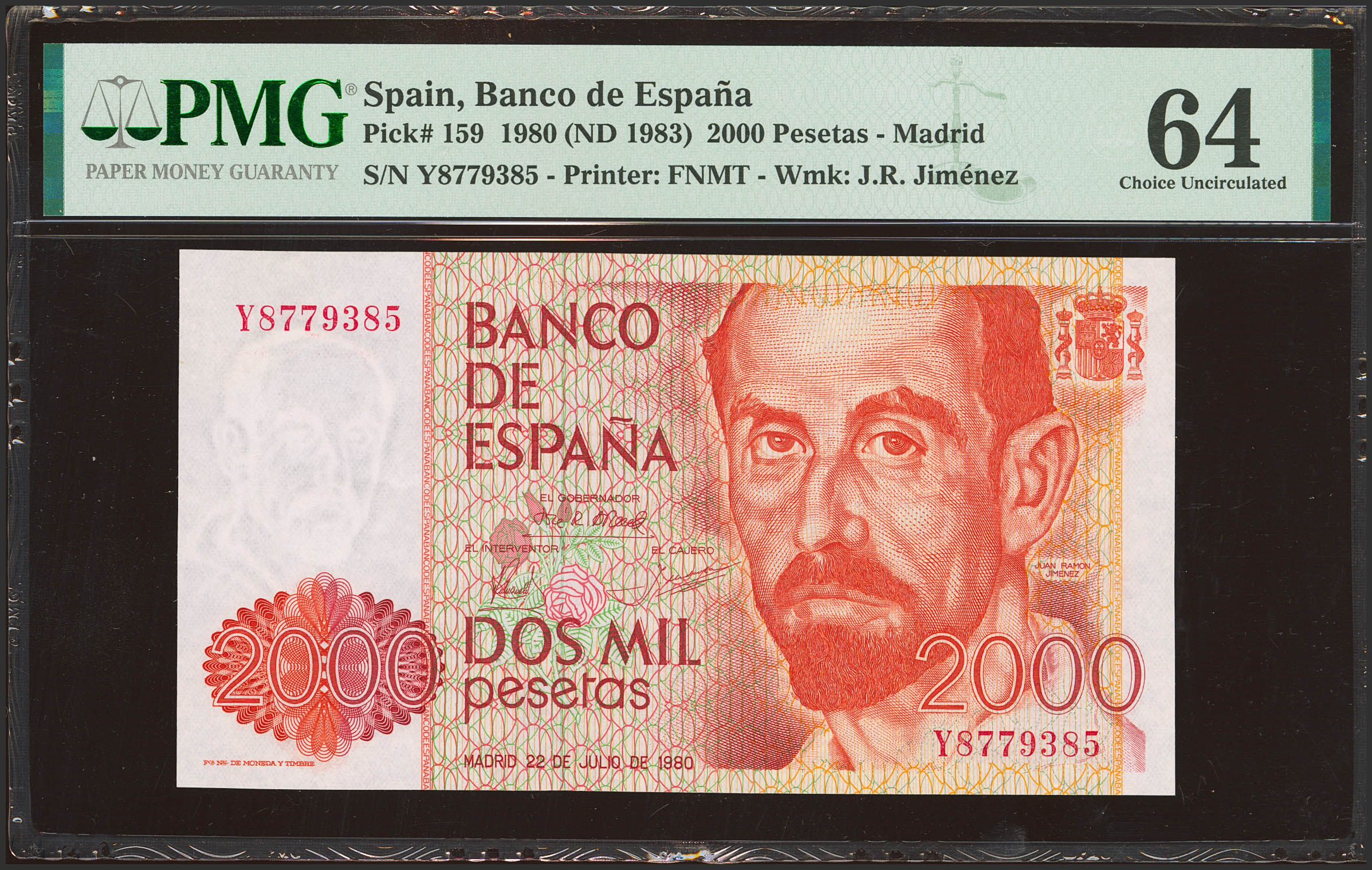 2000 Pesetas. 22 de Julio de 1980. Serie Y. (Edifil 2023: 479a, Pick: 159). SC. Encapsulado PMG64.