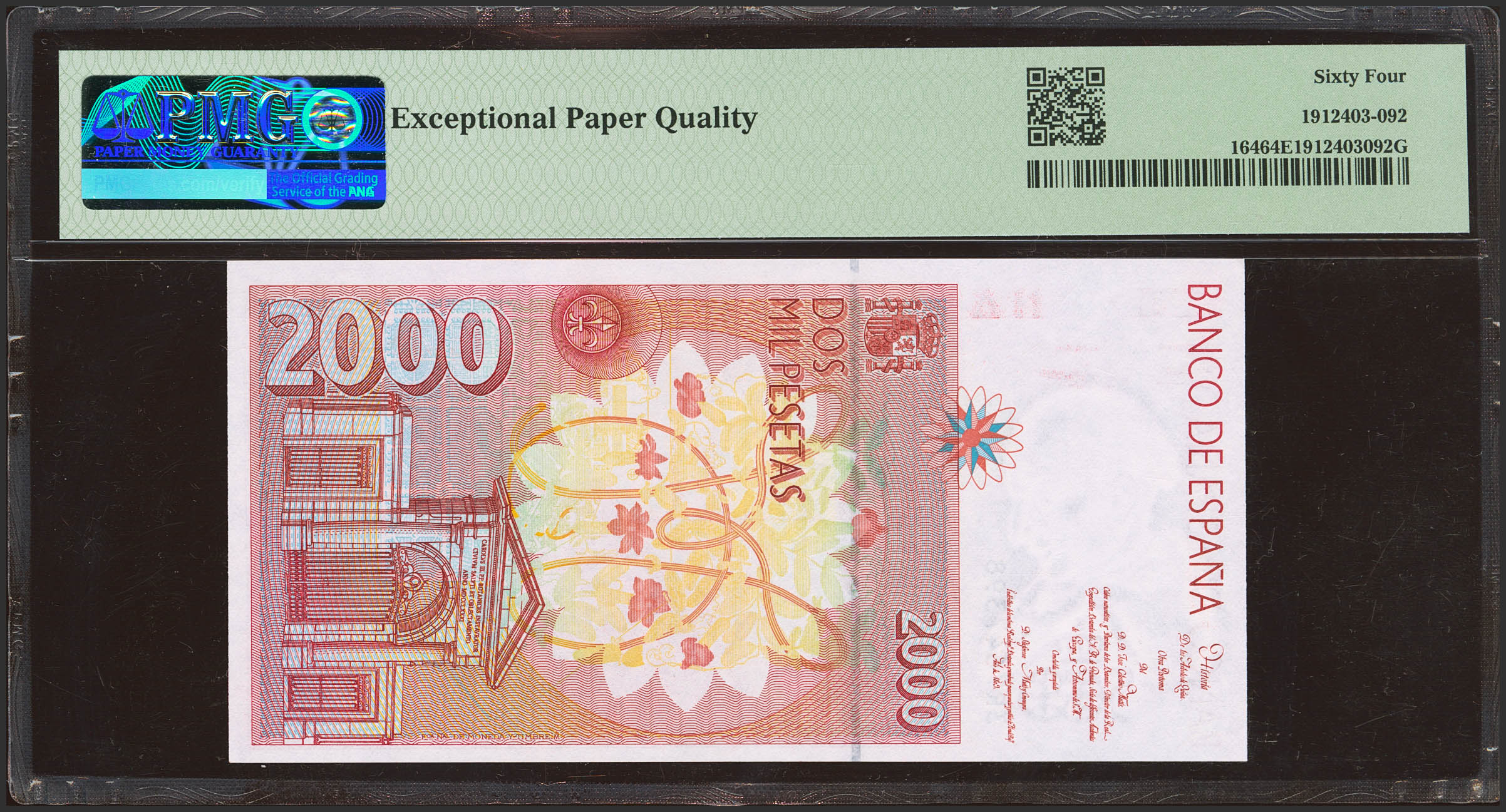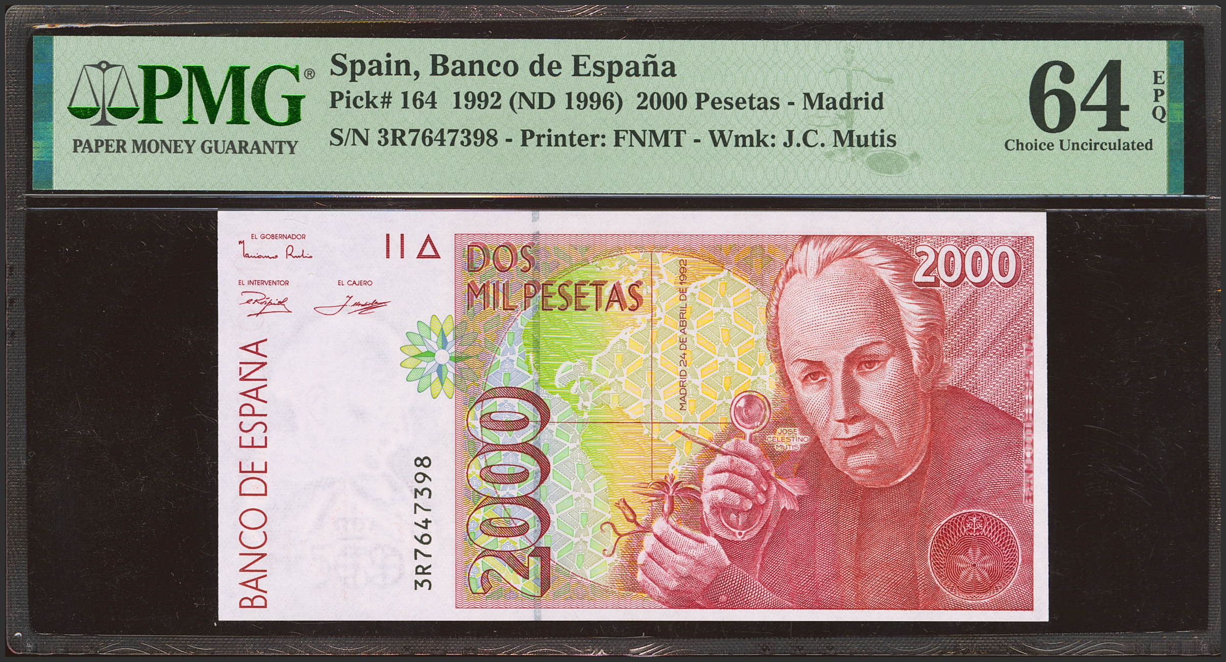 2000 Pesetas. 24 de Abril de 1992. Serie 3R. (Edifil 2023: 482Aa). SC. Encapsulado PMG64EPQ.