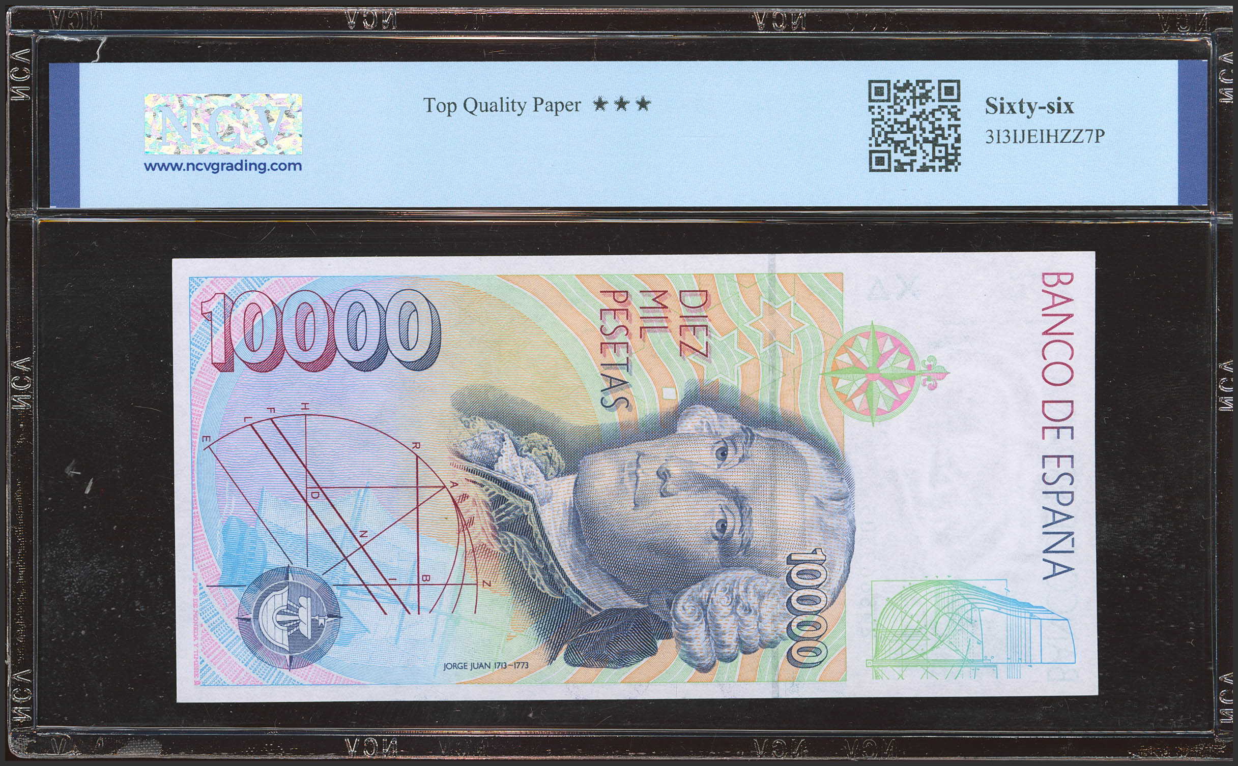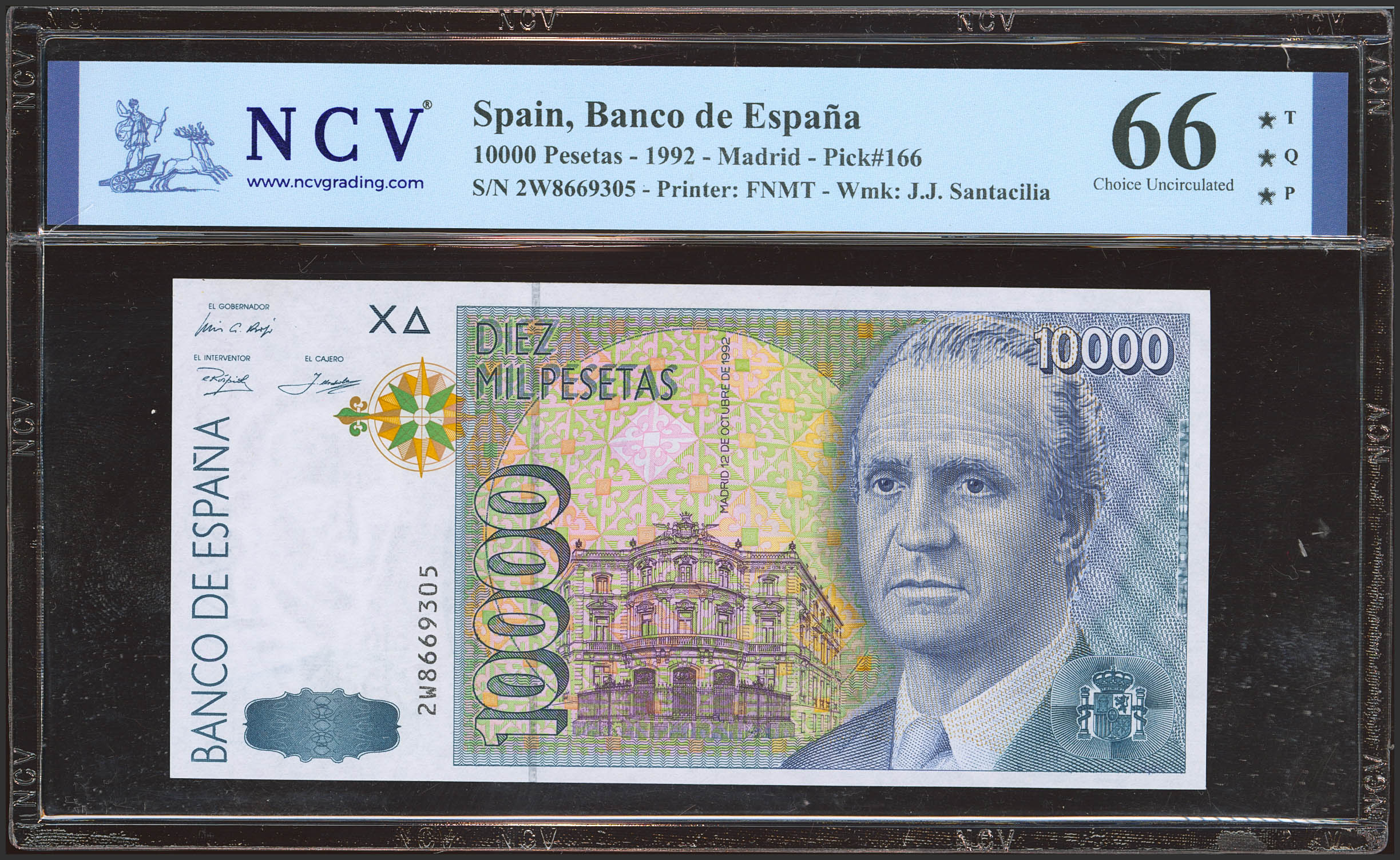 10000 Pesetas. 12 de Octubre de 1992. Serie 2W. (Edifil 2023: 485a, Pick: 166). SC. Encapsulado NCV66TQP.