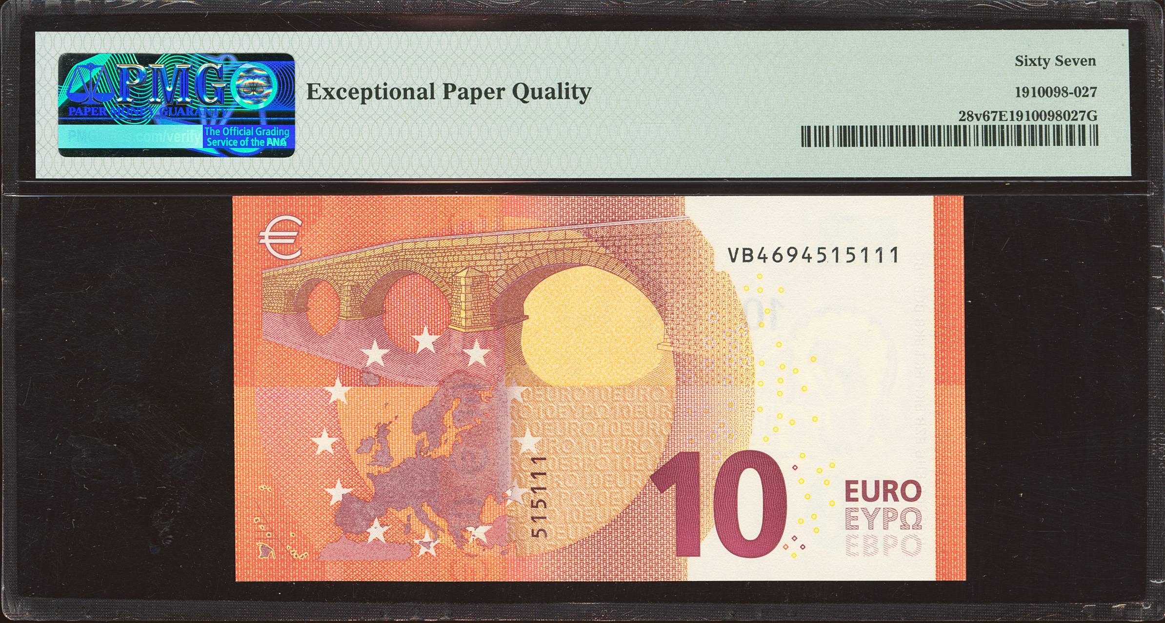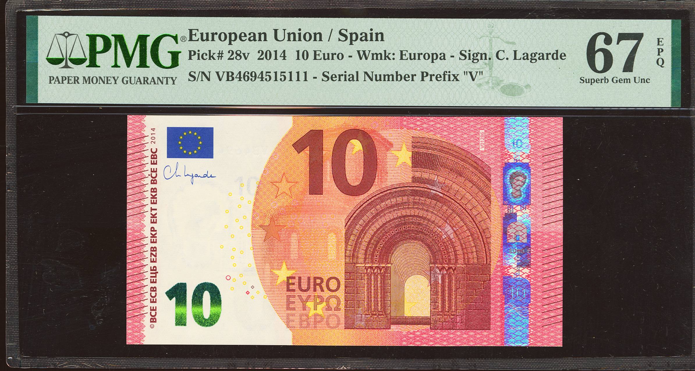 10 Euros. 23 de Septiembre de 2014. Firma Lagarde. Serie VB (España). (Edifil 2023: 494A, Pick: 28v). SC. Encapsulado PMG67EPQ.