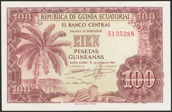 GUINEA ECUATORIAL. 100 Pesetas. 12 de Octubre de 1969. Sin serie. (Pick: 1). Inusual. SC-.