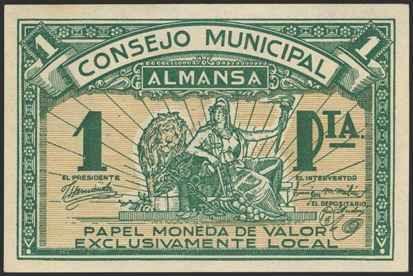 ALMANSA (ALBACETE). 1 Peseta. Prueba de anverso. (1937ca). (González: 550). Raro. SC.