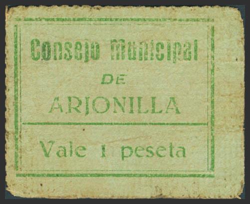 ARJONILLA (JAEN). 1 Peseta. (1937ca). (Pick: 781). Raro. MBC+.