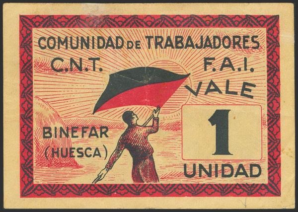 BINEFAR (HUESCA). 1 Unidad. (1937ca). (González: 1219). Raro, reparado. MBC-.