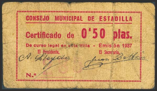 ESTADILLA (HUESCA). 50 Céntimos. 1937. (Pick: 2351). Inusual. BC+.
