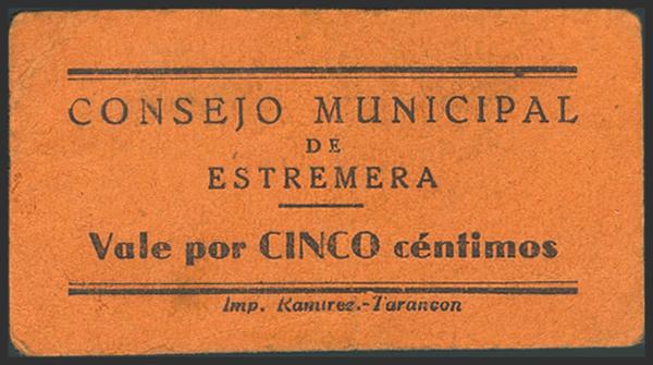 ESTREMERA (MADRID). 5 Céntimos. (1937ca). (Pick: 2387). Muy raro. MBC+.