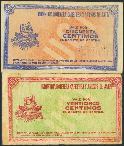 JAEN. 25 Céntimos y 50 Céntimos. (1937ca). Serie C y B, respectivamente. (Pick: 2983, 2984). MBC-.