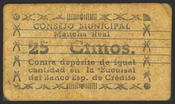 MANCHA REAL (JAEN). 25 Céntimos. (1937ca). (Pick: 3356). Muy raro. MBC+.