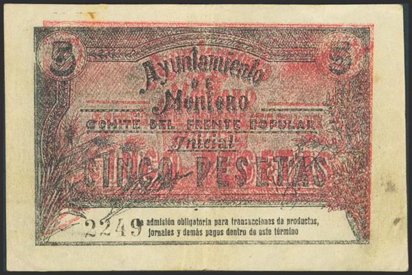 MONTORO (CORDOBA). 5 Pesetas. (1937ca). (Pick: 3668). Raro. MBC+.