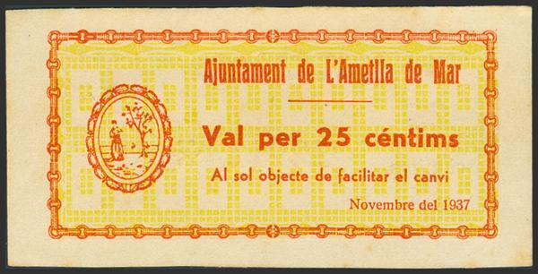 AMETLLA DE MAR (TARRAGONA). 25 Céntimos. Noviembre de 1937. (Pick: 6252). SC-.
