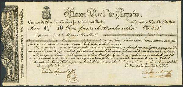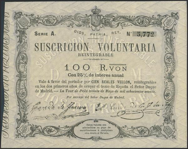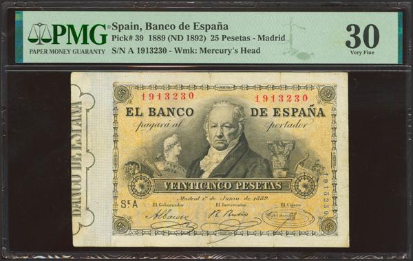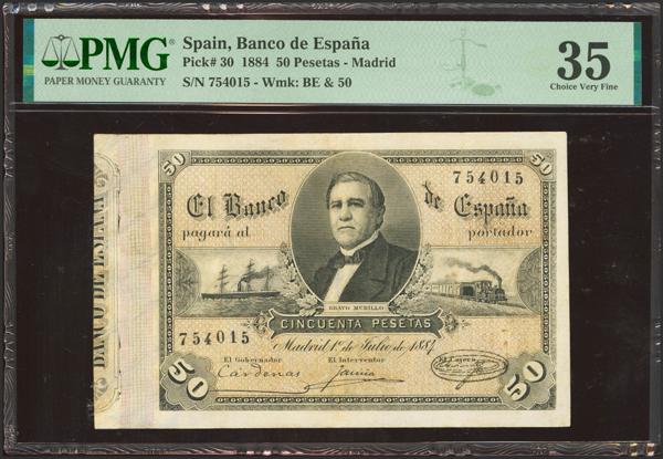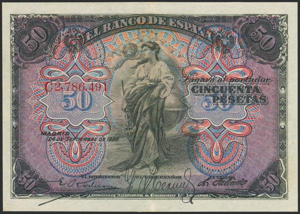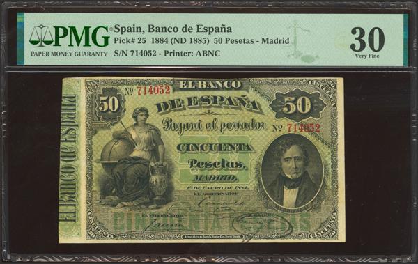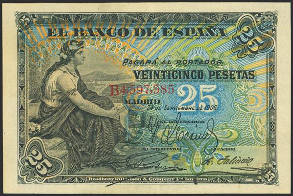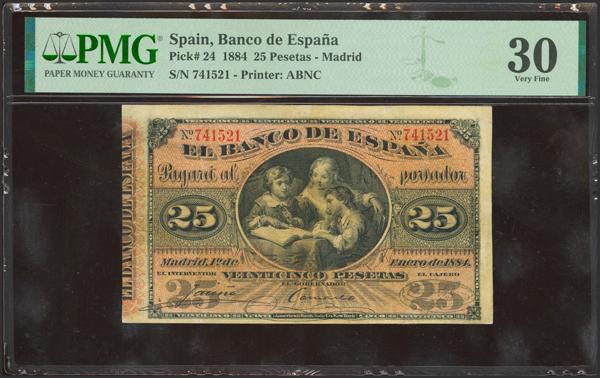 25 Pesetas. 1884. Billete Publicitario de un Gabinete Odontálgico, con numeración, impreso en la litografía Berenguer Ruzafa de Madrid, el dorso es donde más se aprecia la diferencia con el original, ya que es donde más carga publicitaria ofrece el panfleto notafílico. Extraordinariamente raro billete publicitario del siglo XIX, casi con toda seguridad el billete publicitario español más antiguo conocido. MBC-.