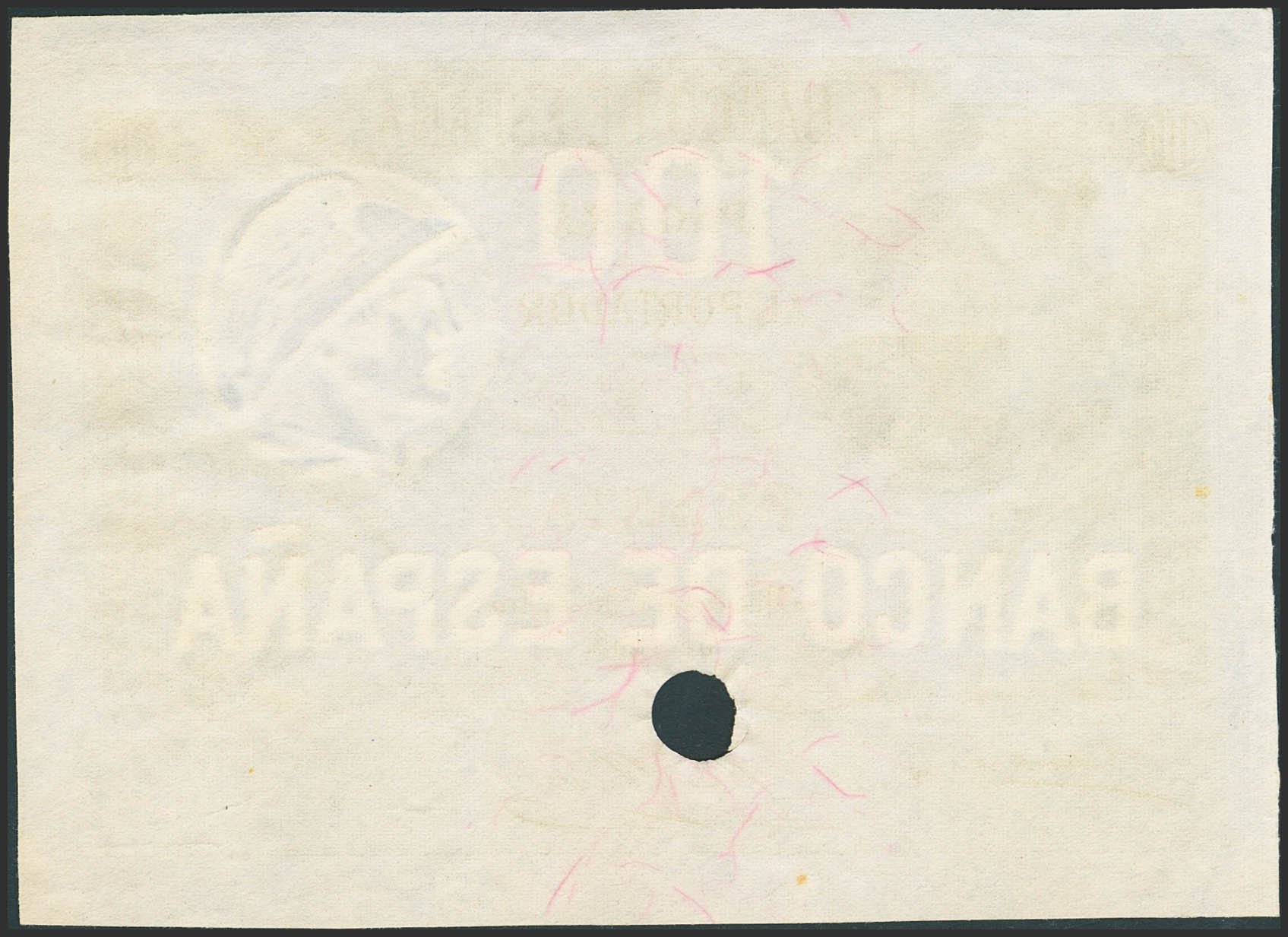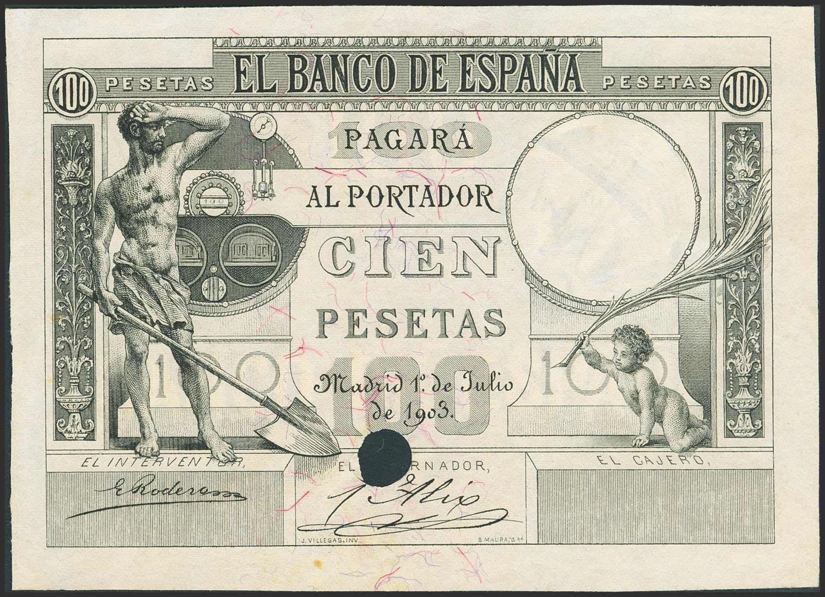 100 Pesetas. 1 de Julio de 1903. Prueba de anverso y sin numeración. (Edifil 2023: 310P). Inusual. SC--.