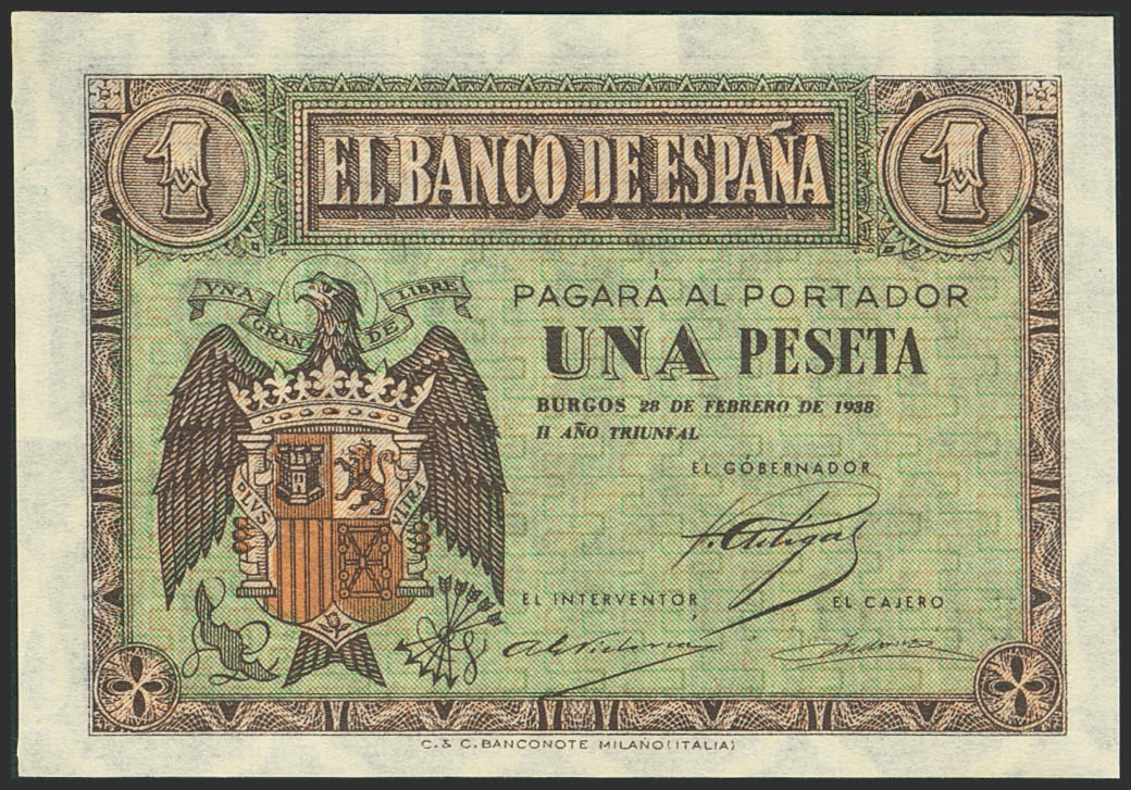1 Peseta. 28 de Febrero de 1938. Serie E. (Edifil 2023: 427a). Conserva todo su apresto original. SC.