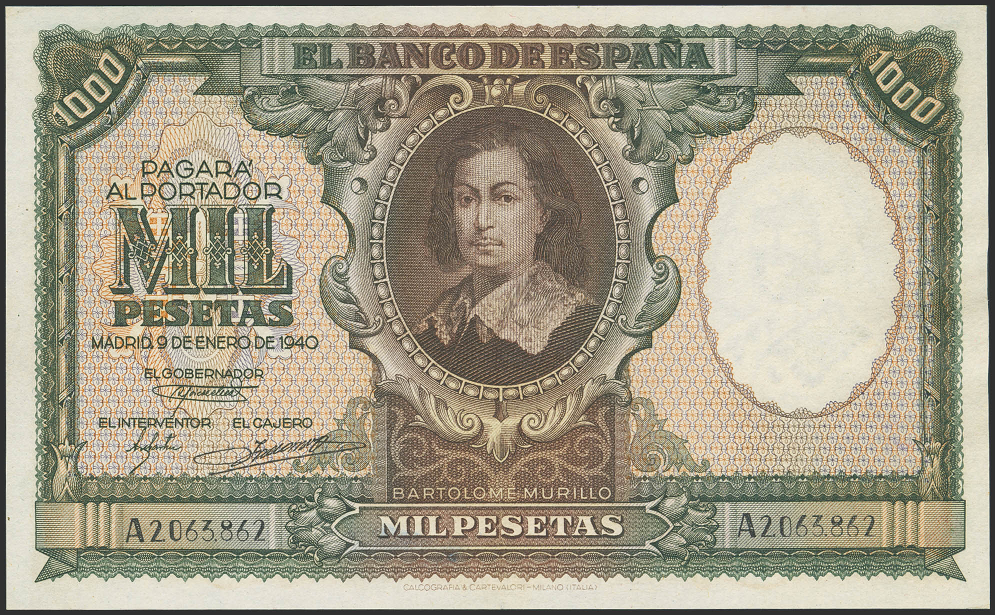 1000 Pesetas. 9 de Enero de 1940. Serie A. (Edifil 2023: 440). Conserva algo de su apresto original. EBC.