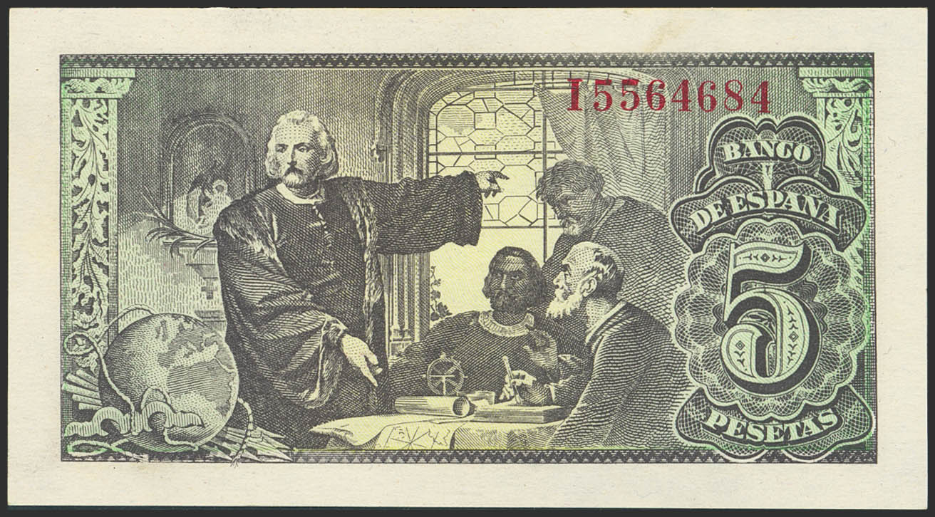 5 Pesetas. 13 de Febrero de 1943. Serie I. (Edifil 2023: 446a). Apresto original. SC.
