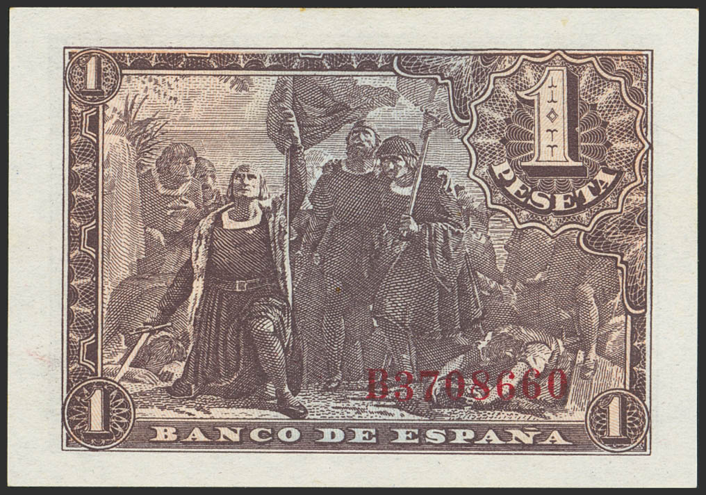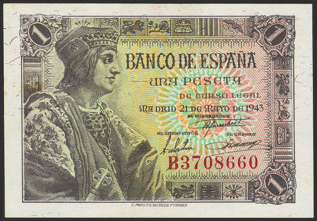 1 Peseta. 21 de Mayo de 1943. Serie B. (Edifil 2023: 447a). Apresto original. SC.